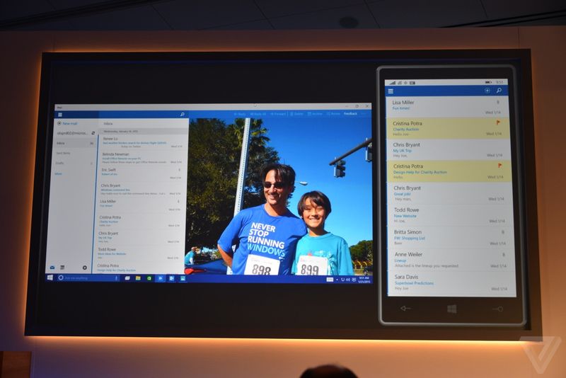 Joe Belfiore a fost amfitrionul evenimentului, prezentând pe scenă toate inovațiile menționate mai sus. Windows 10 pentru telefoane va include și o tastatură actualizată, care va crește eficiența de scriere a utilizatorului. Belfiore a prezenta și integrarea lui Cortana în Windows 10, în taskbar. Prezența sa e marcată de o bară de căutare, iar Cortana vă va permite să căutați pe desktop și pe web, dar va oferi și notificări pop up. Cortana a evoluat și oferă acum o interacțiune mai naturală, dar și universalitate a experienței pe mobil, tableta și PC.