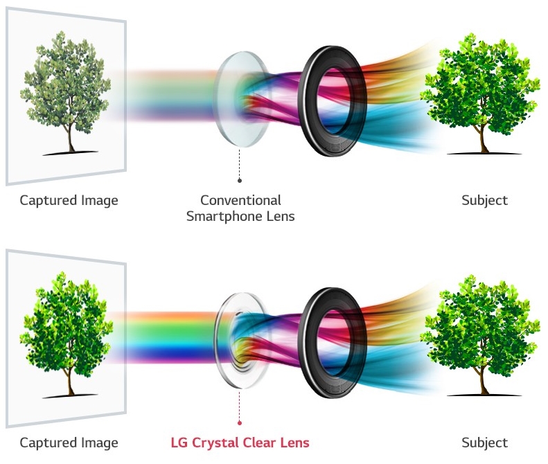 În plus LG şi-a propus să ofere pe senzorul cu deschiderea generoasă şi "cea mai clară lentilă de până acum". Va fi capturată cu până la 25% mai multă lumină cu ajutorul acestor inovaţii, faţă de o cameră cu deschidere F/1.8. Noua Crystal Clear Lens are o abilitate specială de a aduna lumină, net superioară unei lentile din plastic şi oferă o reproducere a culorilor cât mai realistă.