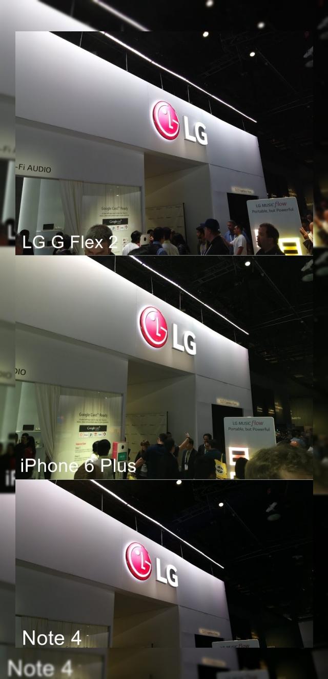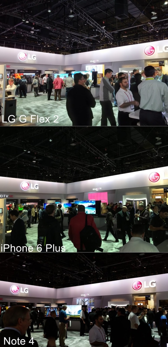 Din aceste prime fotografii realizate la fața locului putem observa cum LG G Flex reușește să redea mai luminos zonele întunecate față de celelalte telefone. Deși nu se cunoaște cu certitudine dacă aceste fotografii reprezintă o combinare a mai multor cadre succesive ca și în cazul HDR, rezultatul obținut este unul remarcabil în ceea ce privește managementul diferențelor de lumină.