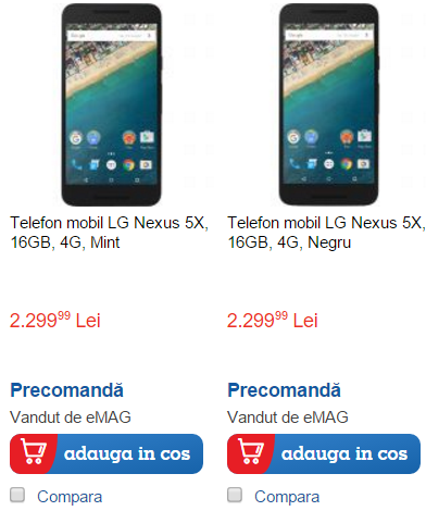 După ce săptămâna trecută, câteva magazine online listau spre pre-comandă noul smartphone LG Nexus 5x, iată că începând de astăzi și eMAG oferă această posibilitate. Pentru moment, retailer-ul ne oferă doar varianta cu 16 GB spațiu intern de stocare disponibilă pe negru și verde mint.
