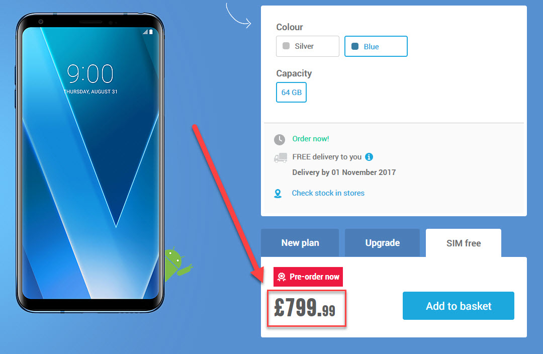 LG V30 ar putea fi cel mai atractiv telefon produs de LG până acum, atât ca design, cât şi ca funcţionalitate, deci nu e o coincidenţă că LG va practica un preţ premium pentru el. Spre exemplu tocmai am aflat că în Marea Britanie terminalul va costa 800 de lire sterline la Carphone Warehouse, echivalentul a 894 euro, sau 4.100 lei la noi.