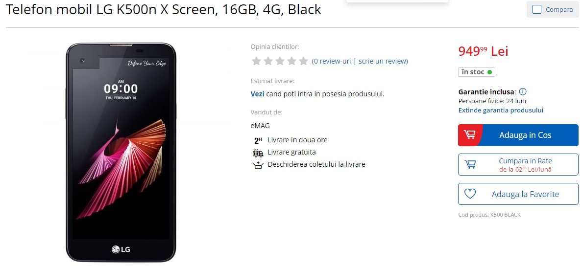 Lista este completată de către bateria de 2300 mAh, și de prezența tehnologiei 4G LTE. Puteți găsi telefonul pe eMAG.ro la prețul de 949 lei.
