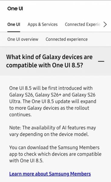Samsung a confirmat într-un mod destul de vag actualizarea One UI 8.5 pentru smartphone-urile mai vechi din portofoliu. Noile Galaxy S26, S26+ și S26 Ultra sunt primele telefoane din portofoliul sud-coreenilor care rulează această interfață în variantă stabilă, alături de Android 16. Update-ul va sosi însă curând și pe flagship-uri mai vechi, în frunte cu seria Galaxy S25 (care rulează deja noua versiune în variantă Beta).