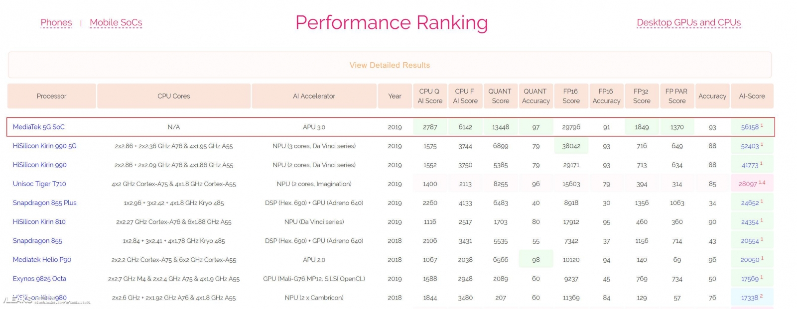Avem soluția grafică ARM Mali-G77 aici, suport pentru camere de 80 mpx, dar și pentru setup multi-camera precum 32 + 16 mpx. De asemenea ni se promit upgrade-uri la nivel de procesare AI, obținând potrivit unui benchmark cel mai mare scor AI de până acum, depășind Kirin 990 la acest capitol.