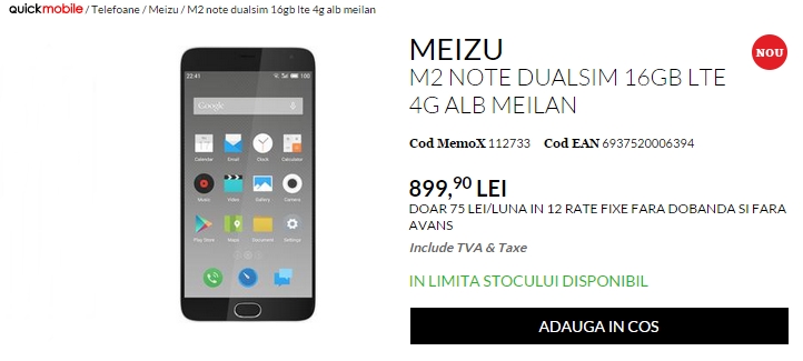 La început de iunie, chinezii de la Meizu anunțau lansarea unui nou smartphone de buget, mai precis cea a lui M2 Note, phablet de 5.5 inch cu preț recomandat de 130$. La scurt timp de la dezvăluirea sa, câteva site-uri printre care și pandawill.com îl listau la comandă pentru suma de 680 lei cu transport gratuit în România.