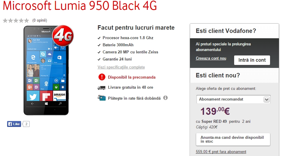 Vodafone România va începe livrarea de terminale Lumia 950 către clienți ce au plasat o pre-comandă, începând din 2 decembrie. Puteți comanda telefonul de aici.