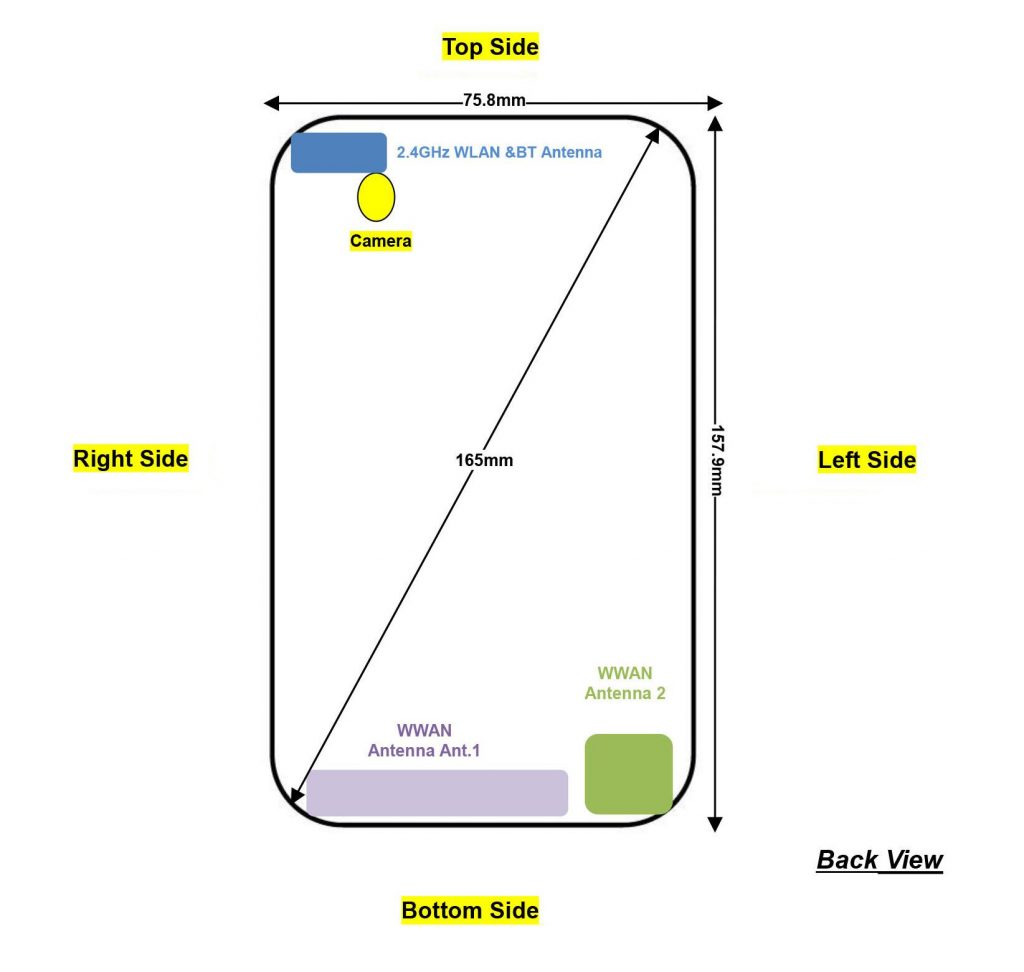 Schița de mai sus ne dezvăluie că telefonul va avea o lățime de 75.8 mm, respectiv o lungime de 157.9 mm - dimensiuni ce indică astfel prezența unui ecran de 6.2 - 6.3 inch. În documentele asociate apar și mențiuni cu privire la baterie, unitate de 5000 mAh capabilă de alimentare la 5V/9V/12V, adică la 15W folosind un încărcător Turbo Charger.