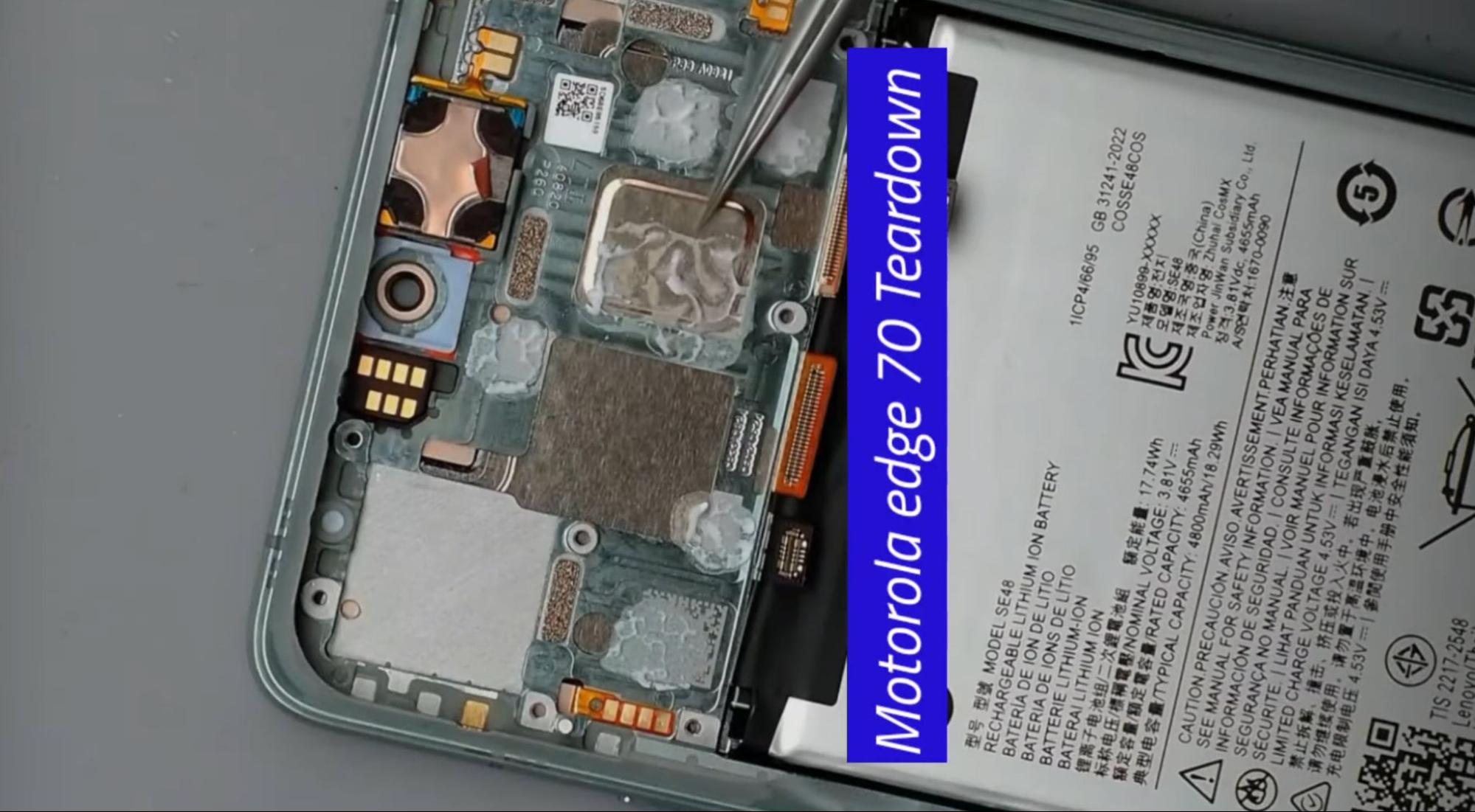În China, telefonul se vinde deja, sub numele de Moto X70 Air şi avem mai jos o disecţie a terminalului, realizată de către canalul YouTube KingMi Mobile. Bateria lui edge 70, cea de 4800 mAh ocupă cel mai mult loc din spaţiul intern. Măsoară doar 3.9 mm în talie, ceea ce este impresionant. E cu 0.4 mm mai groasă totuşi decât bateria lui iPhone air şi cu 0.2 mm mai groasă decât cea de la S25 Edge.