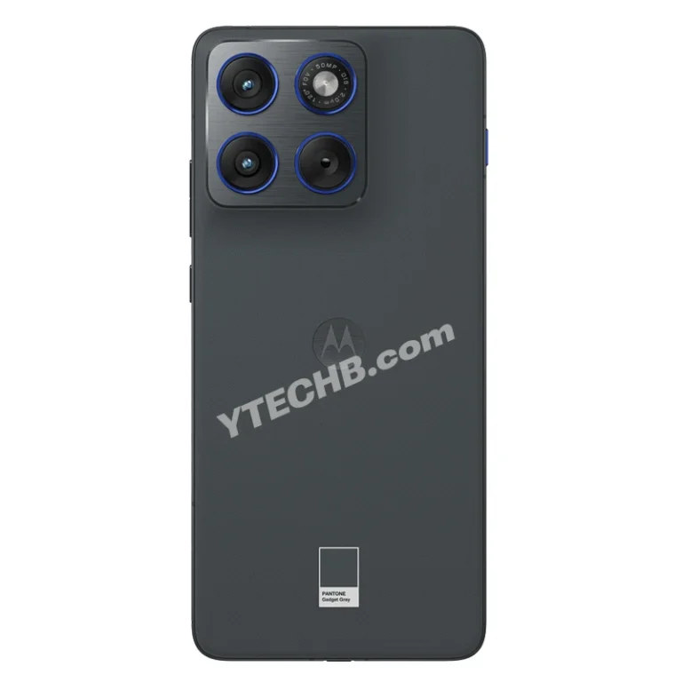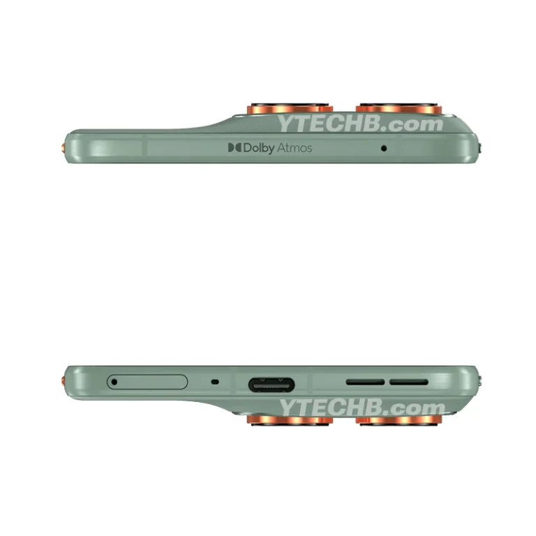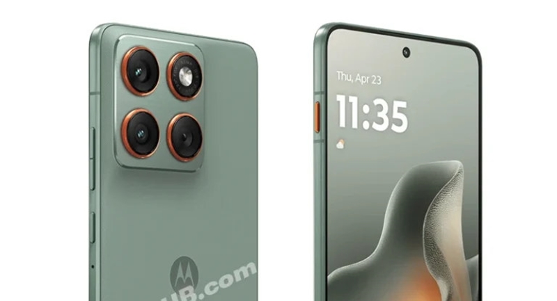 YTECHB vine cu randări proaspete ce ne prezintă telefonul pe verde cu accente aurii/bronz și pe gri. Nuanțele sunt unele Pantone și poartă denumir fancy precum Lily Pad și Gadget Gray. Vedem o zonă frontală cu ecran plat, decupaj selfie bulină și muchii destul de înguste. Pe lateral stânga apare și butonul Moto AI.