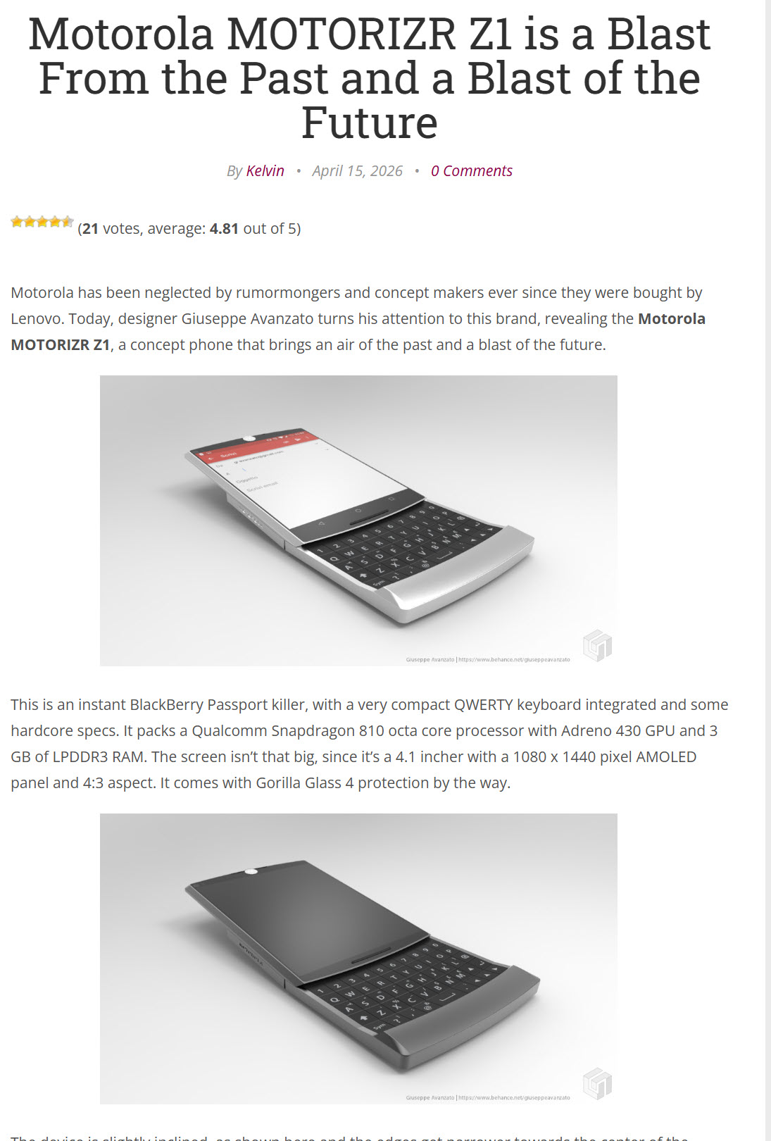 Și acum partea care dă peste cap toată discuția: articolul vizat nu era negativ. Era o postare din 2015 despre un concept de telefon realizat de un designer italian. Simplu, informativ, fără atacuri. Cu toate astea, a fost inclus în plângere.