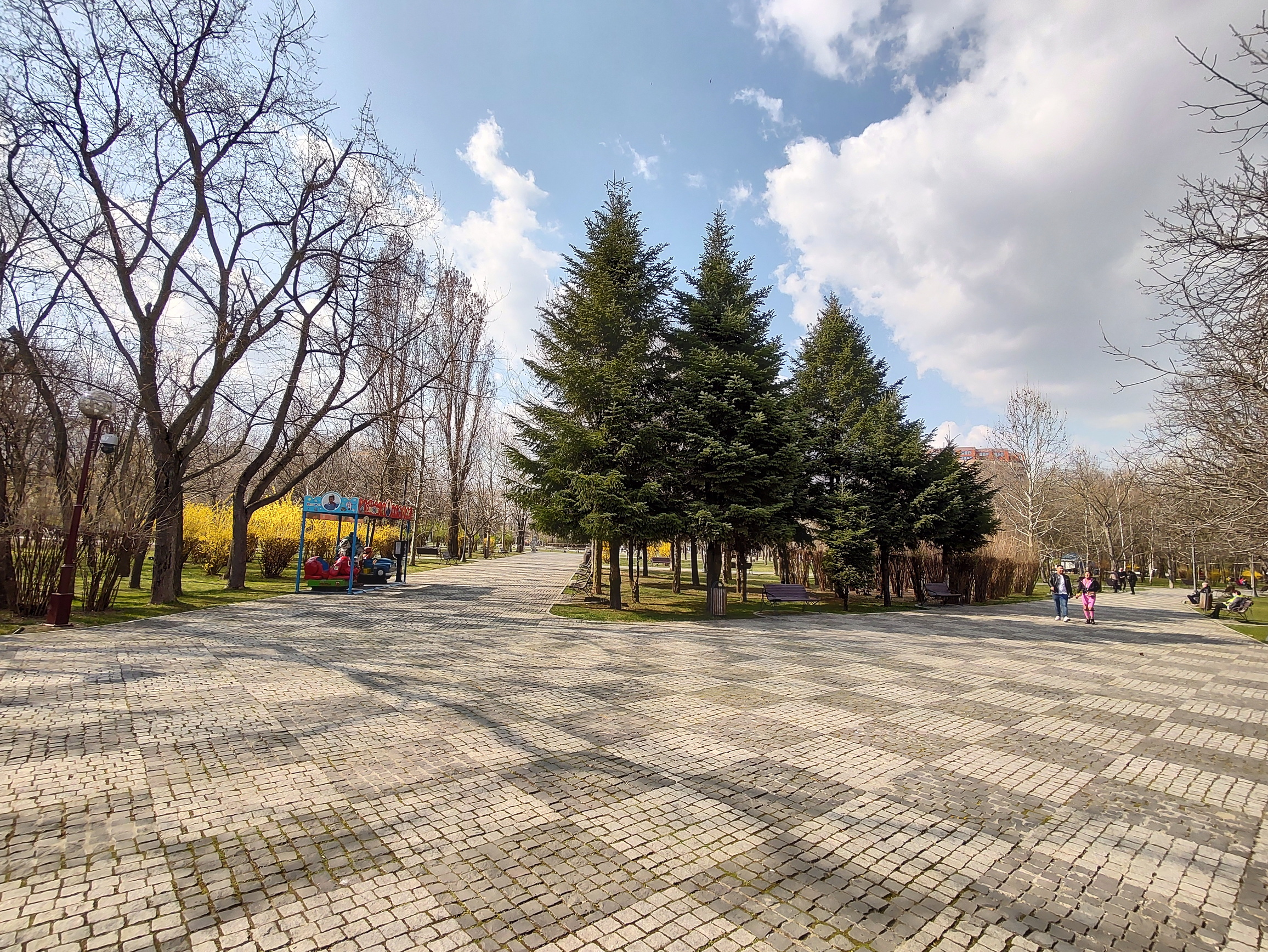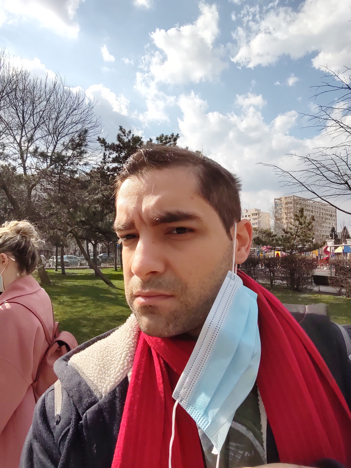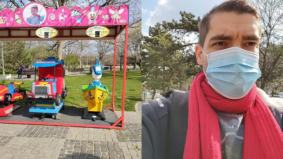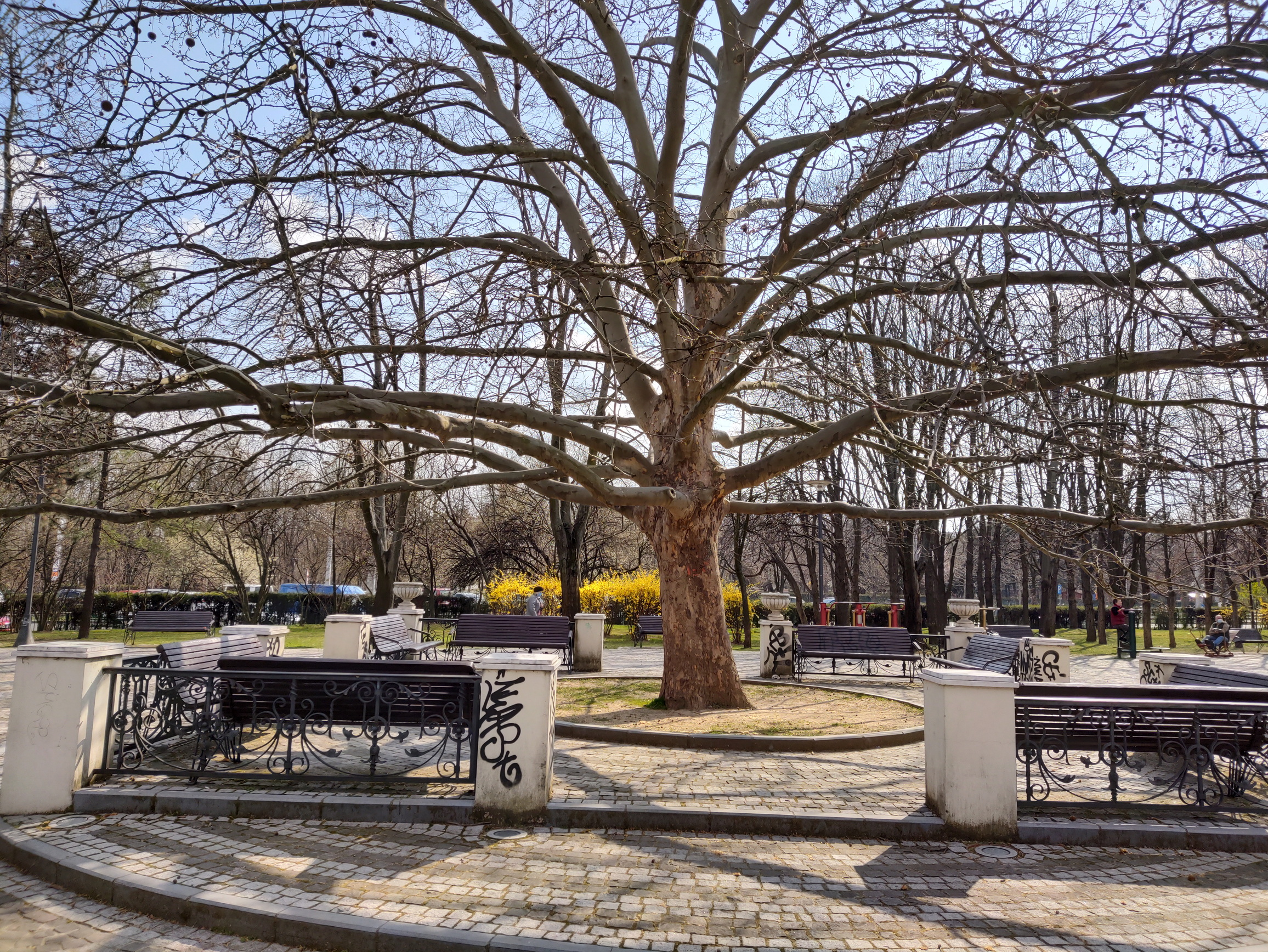 Începem acum şi cu galeria foto, realizată în Bucureşti, în Parcul IOR pe 30 martie 2021. Era o zi friguroasă dar însorită, lucru relevat de fularul de la gât dar şi cerul senin. Camera principală prinde bine detalii şi culori şi cea ultrawide ne arată că nu e una generică de 8 MP, capturând şi ea destule detalii. Se observă totuşi curbura cadrelor. Cantitea de zgomot creşte sesizabil totuşi când treci de la captura cu camera principală la cea ultrawide, aşa cum vedem la acele capturi cu 3 brazi (sau 4?). Se ridică şi expunerea puţin.