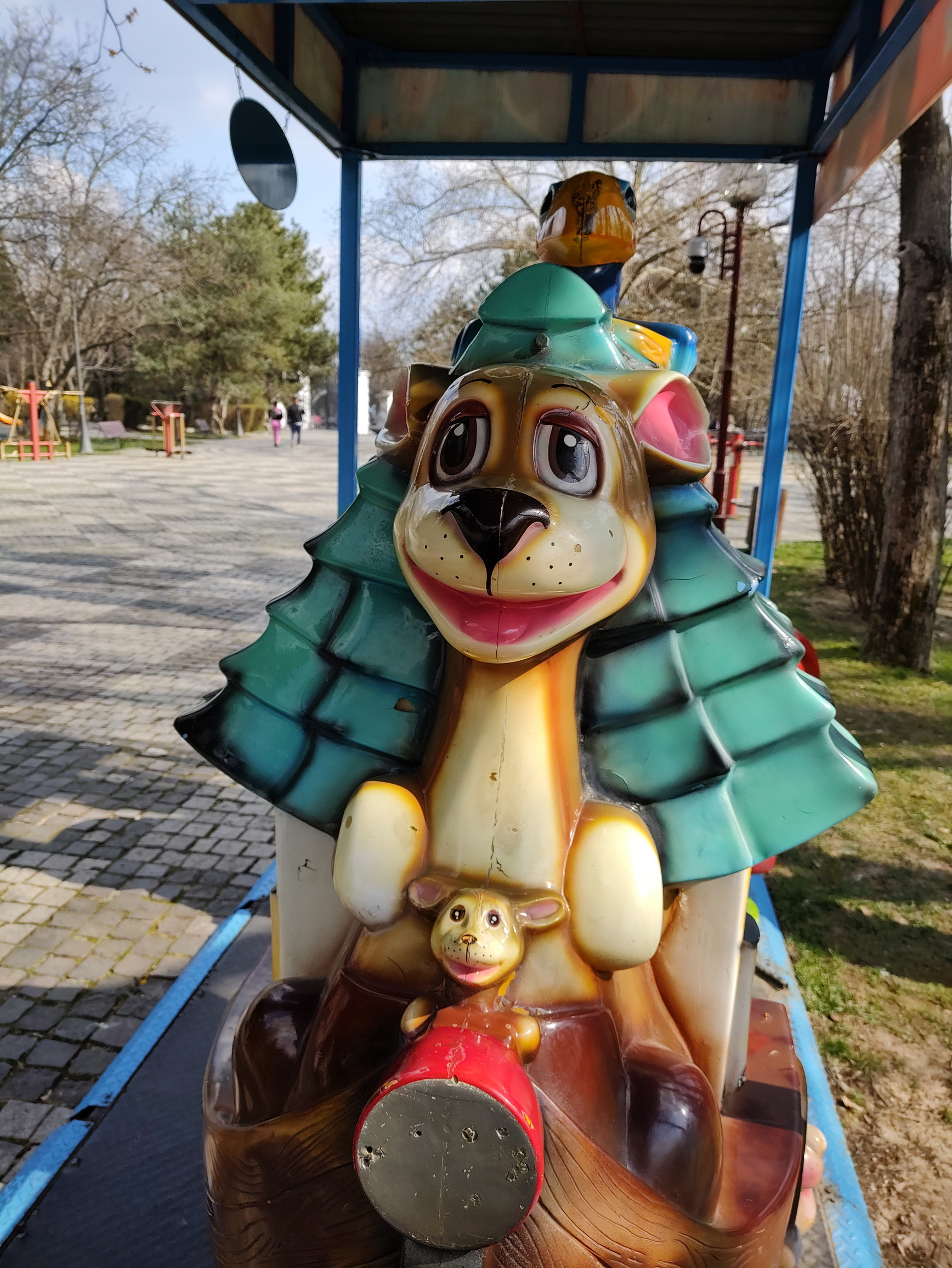 La final când a ieşit soarele a fost ceva tentaţie de supraexpunere, dar camera a făcut faţă binişor provocării şi nu a ars vegetaţia. Camera ultrawide totuşi a început să facă totul mai galben şi cald, cum se vede la capturile cu Donald şi Optimus Prime netransformat. Tot pe final de galerie avem un Macro muncit "alien" cu licheni pe scoarţa unui copac. Am mai făcut poze acelui subiect, dar niciodată aşa detaliat, mulţumită bliţului inel.