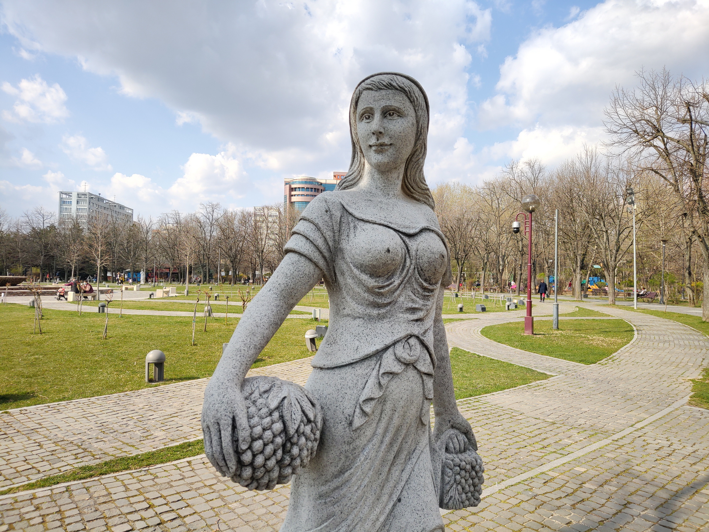 Avem şi filmare peisagistică, cu o apă foarte "vie" şi nori corect redaţi, pragmatic. Fie că vorbim de acea fântână de la intrarea în parc unde se mai plimba Bendeac uneori sau esplanada unde tot văd dresori de câini sau TikTokeri.