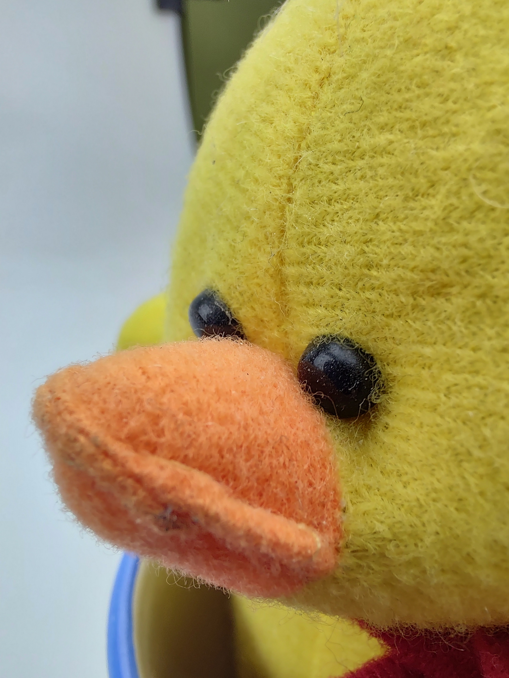 Focalizarea la capturile de 16 MP cu camera principală a fost excelentă, iar contururile jucăriilor sunt excelent redate, clar, delimitările de plan apropiat şi îndepărtat se fac perfect. Îţi lasa multă libertate focalizarea aici şi te poţi juca cu distanţele cum vrei. Am văzut o uzură a acelei jucării pui de cangur pe care 99.9% dintre toate telefoanele testate de mine nu au arătat-o până acum. Sunt calibrate corect sRGB şi nuanţele de roşu şi albastru.