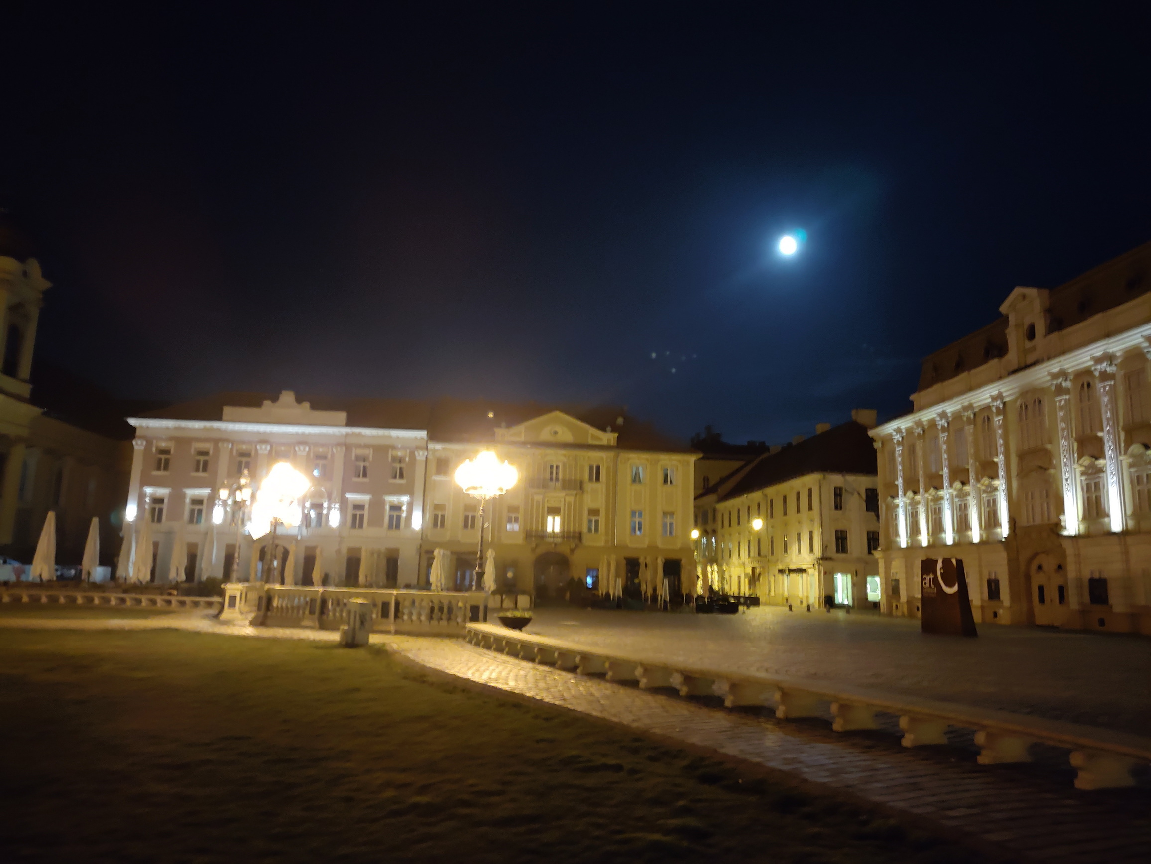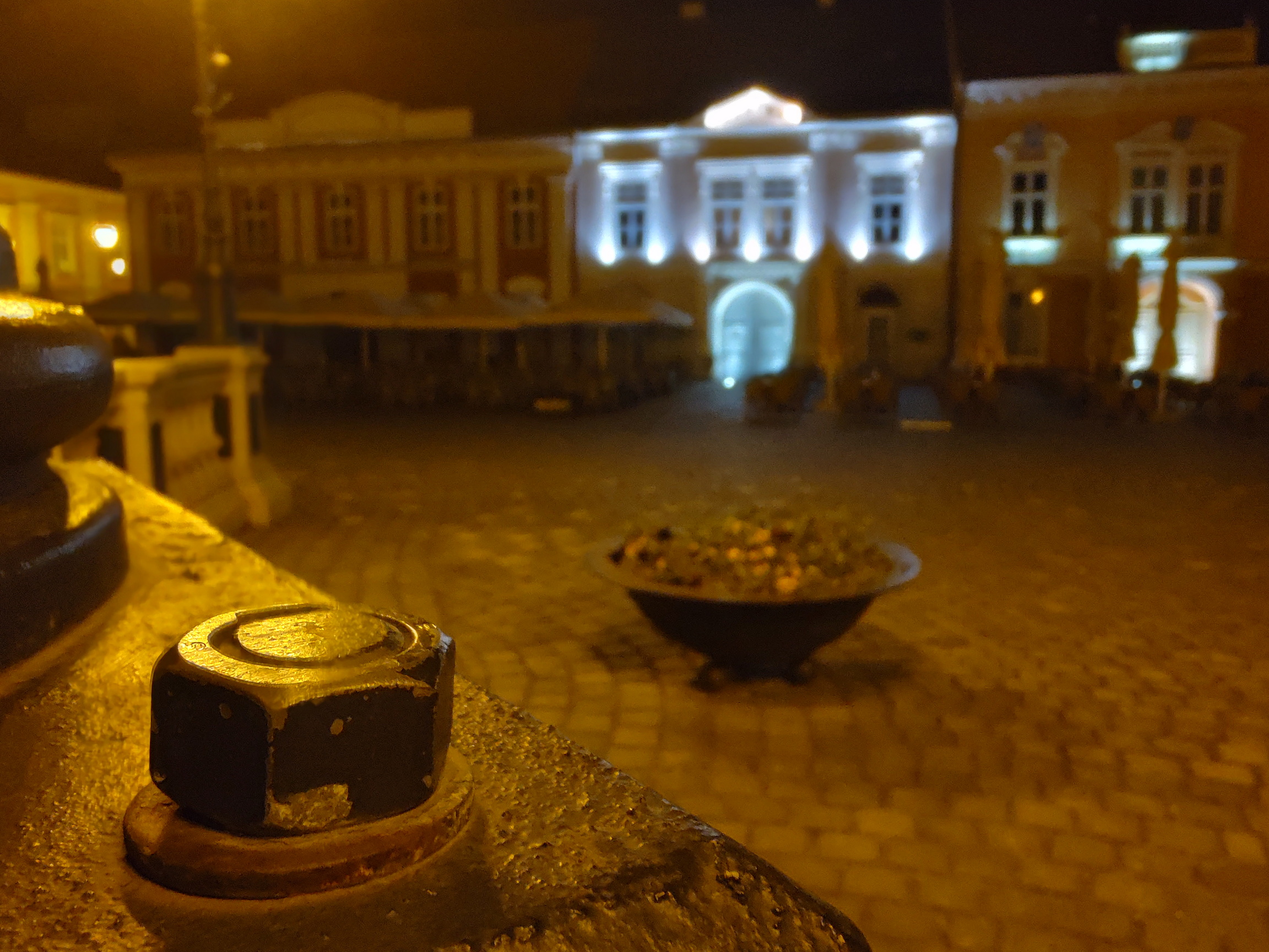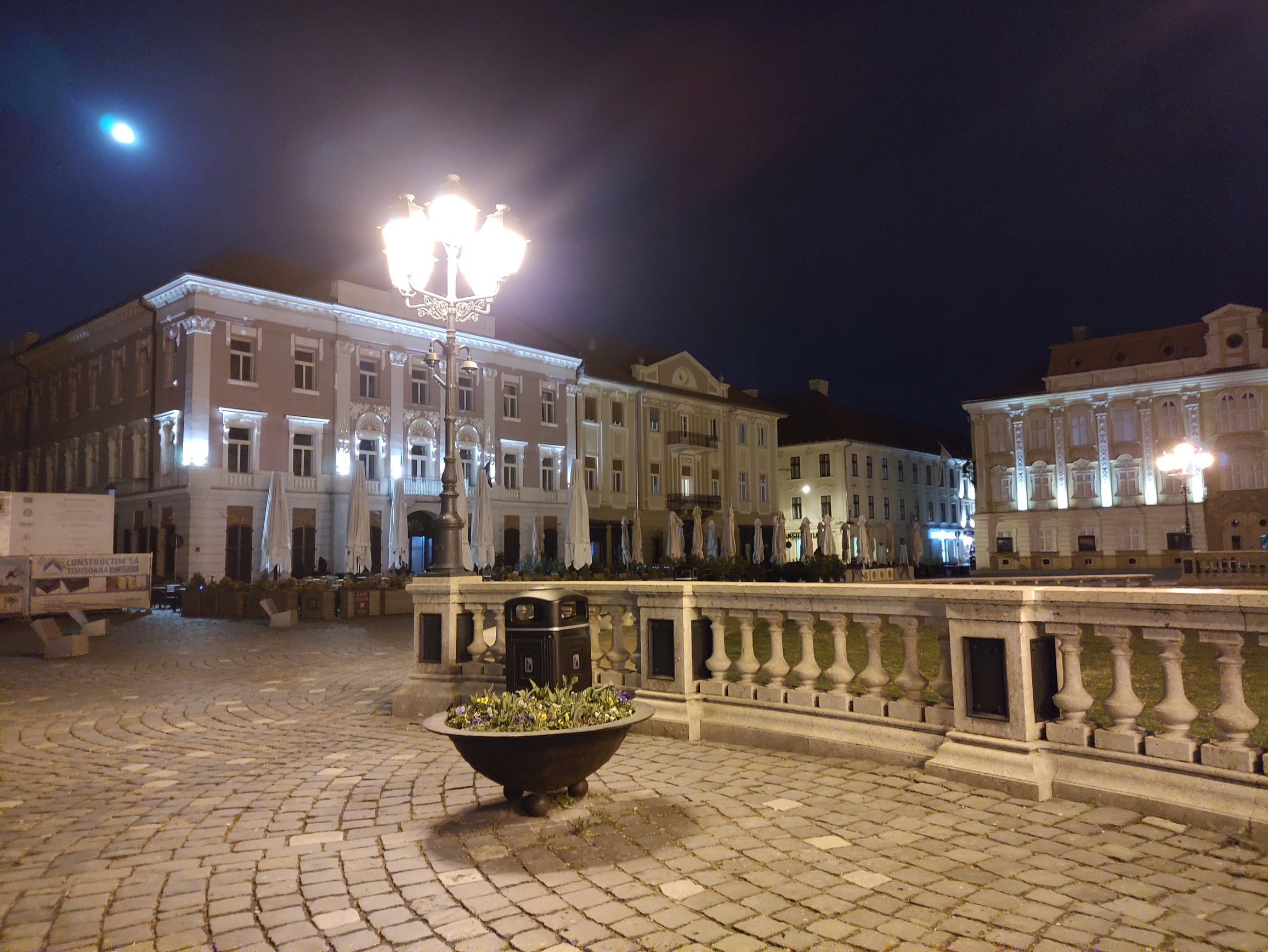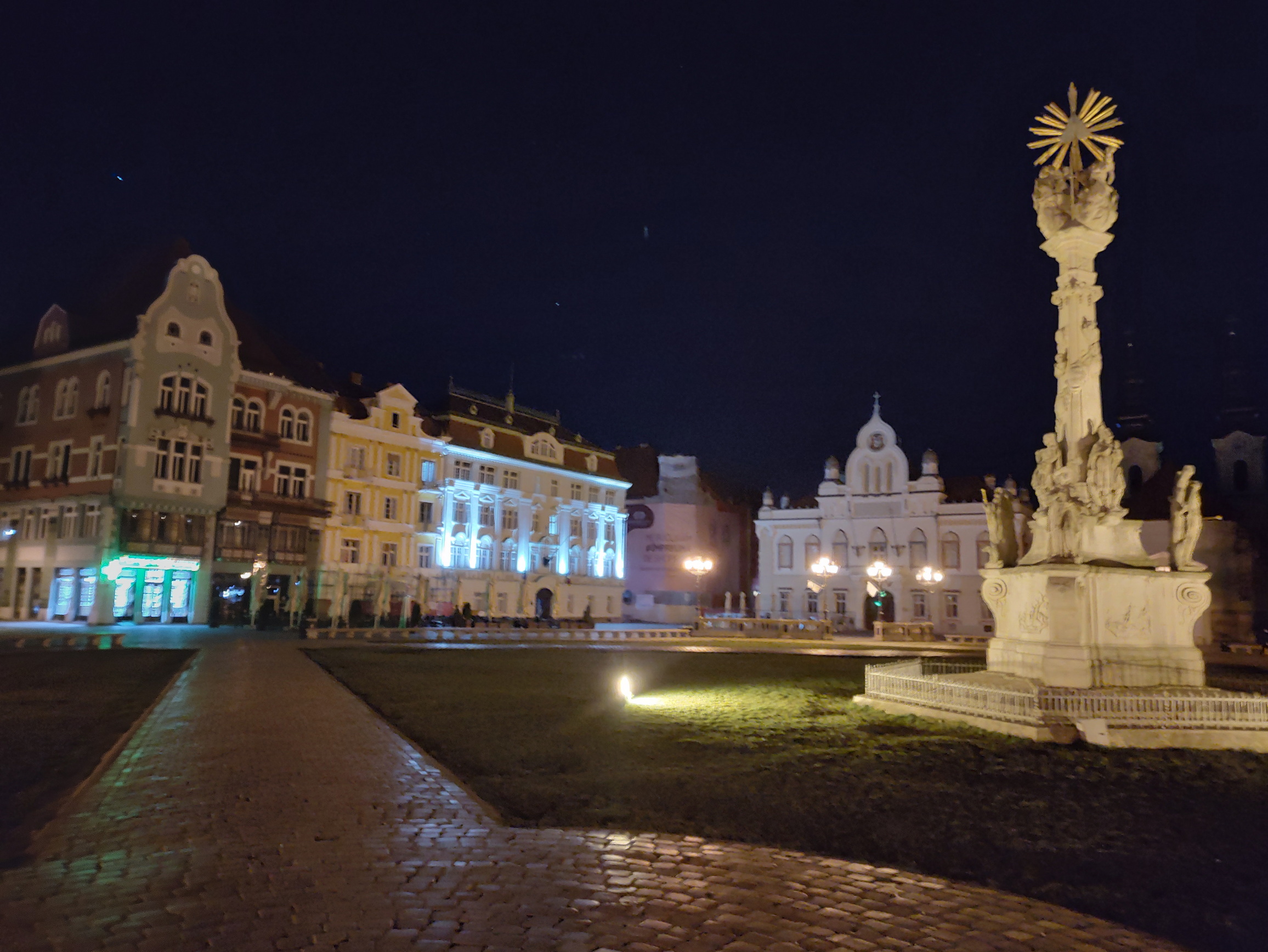 În condiţii low light trecem la Timişoara, pentru o galerie nocturnă în centrul oraşului. Capturile au fost cam întunecate şi gri, uneori roşiatice, portocalii, calde. Felinarele stradale creează dungi de lumină prea mari în jurul lor, mai mari decât ce vedem de obicei. E şi multă neclaritate la captura ultrawide, un soi de blur chiar. Captură cu Night Mode e ceva mai clară, puţin mai bine focalizată, mai clară şi se descurcă mai bine cu sursele de lumină. Totuşi susţin că avem culori mai calde decât de obicei.