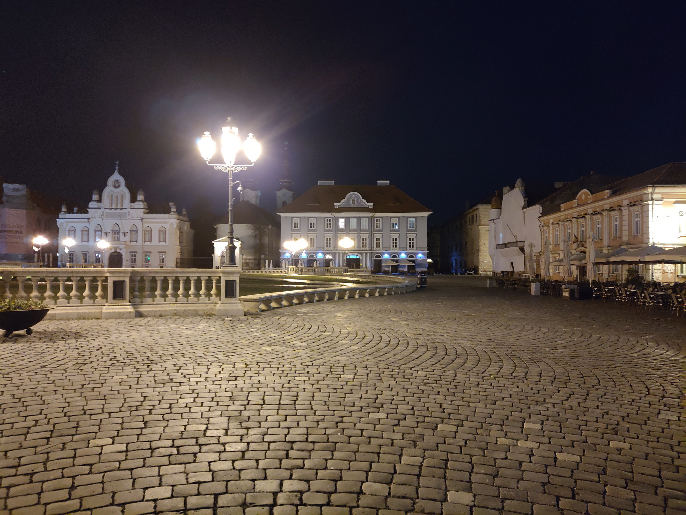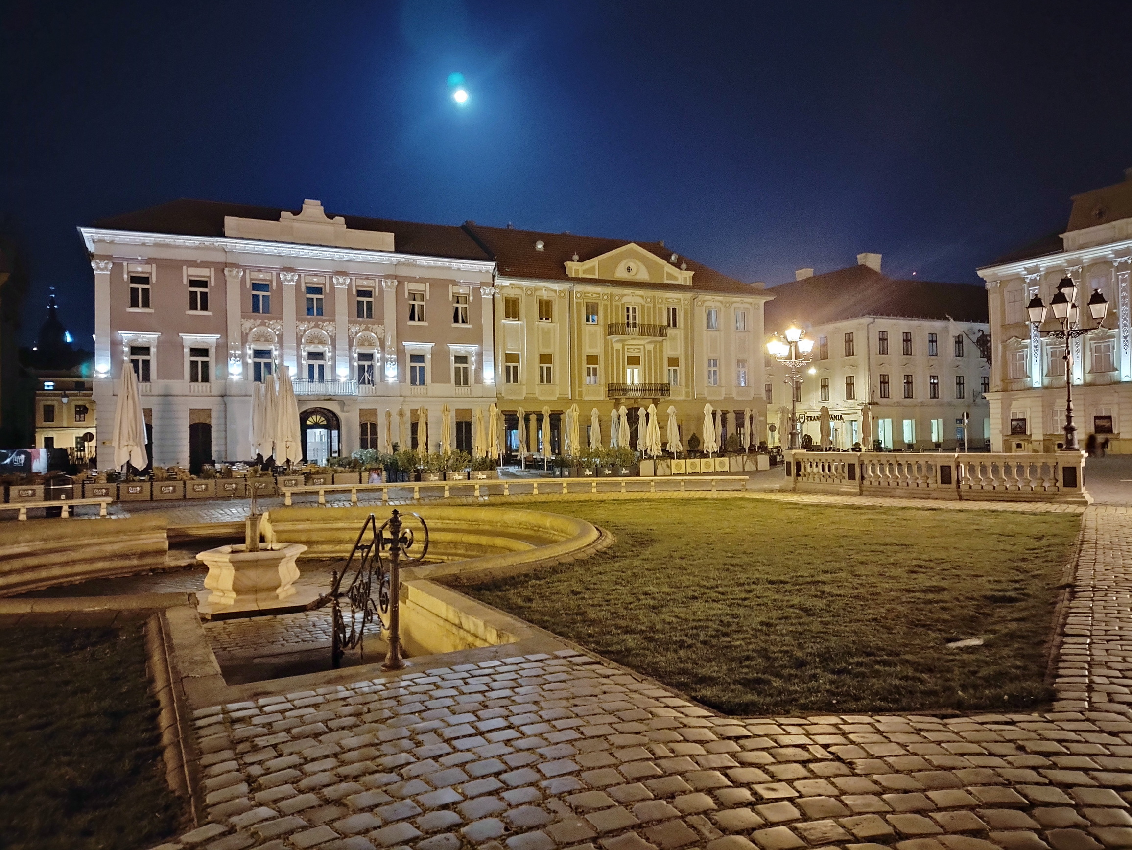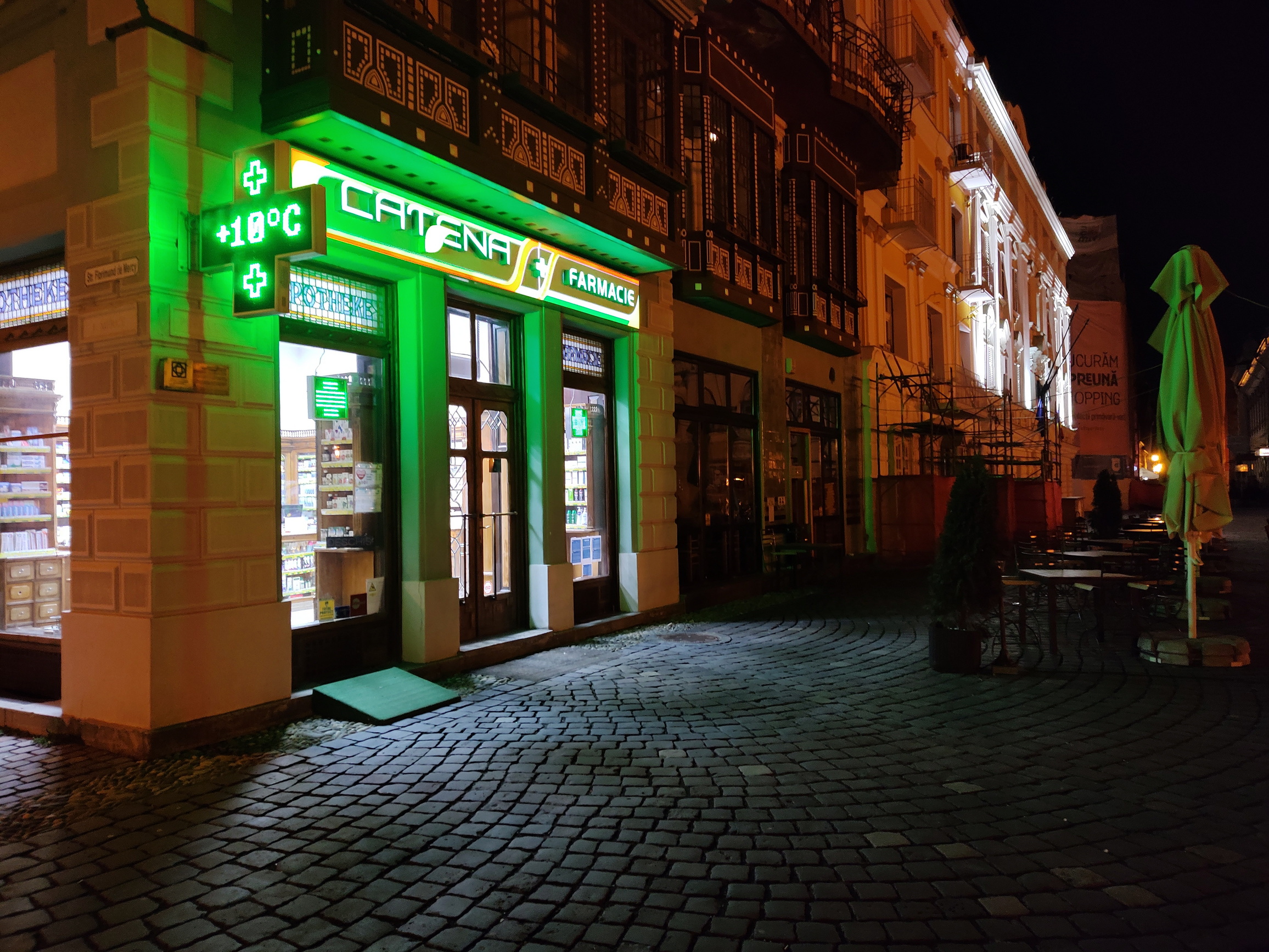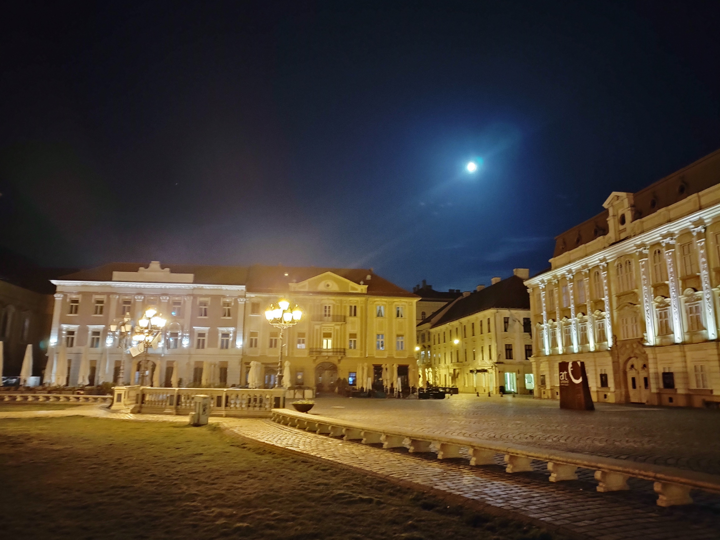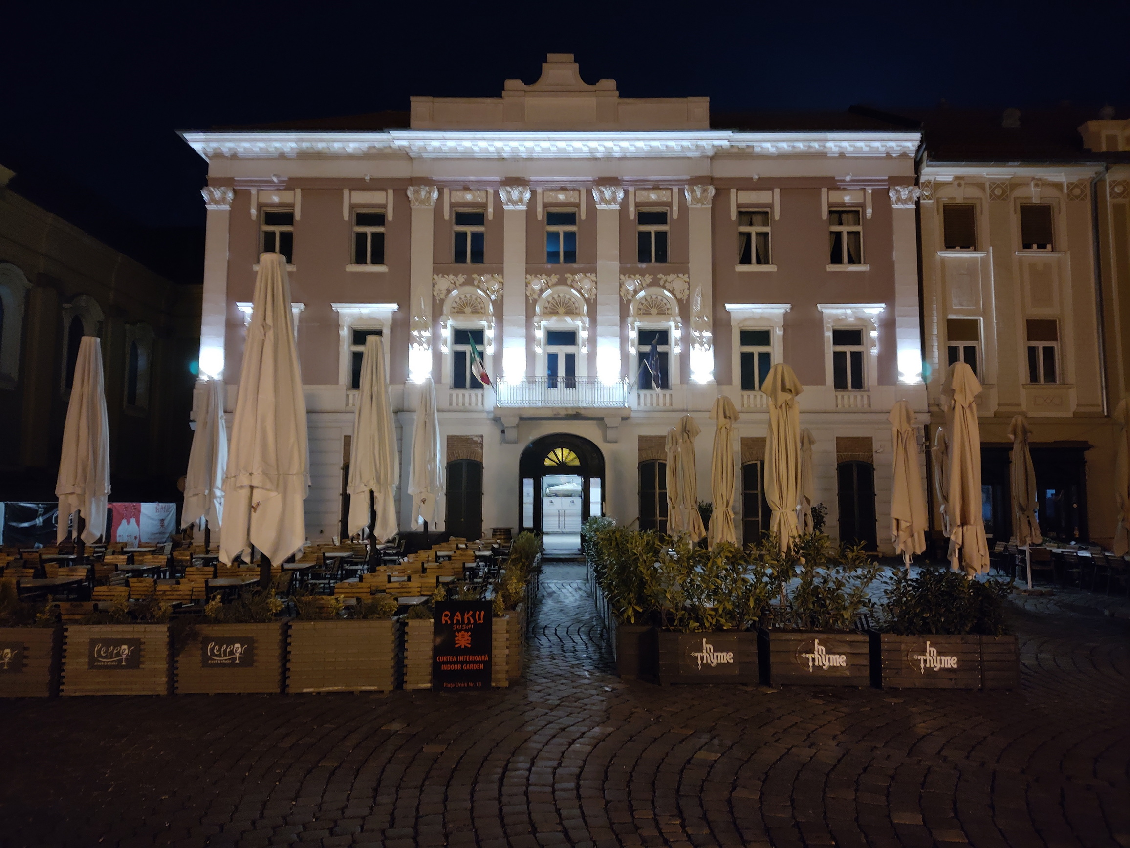 În condiţii low light trecem la Timişoara, pentru o galerie nocturnă în centrul oraşului. Capturile au fost cam întunecate şi gri, uneori roşiatice, portocalii, calde. Felinarele stradale creează dungi de lumină prea mari în jurul lor, mai mari decât ce vedem de obicei. E şi multă neclaritate la captura ultrawide, un soi de blur chiar. Captură cu Night Mode e ceva mai clară, puţin mai bine focalizată, mai clară şi se descurcă mai bine cu sursele de lumină. Totuşi susţin că avem culori mai calde decât de obicei.