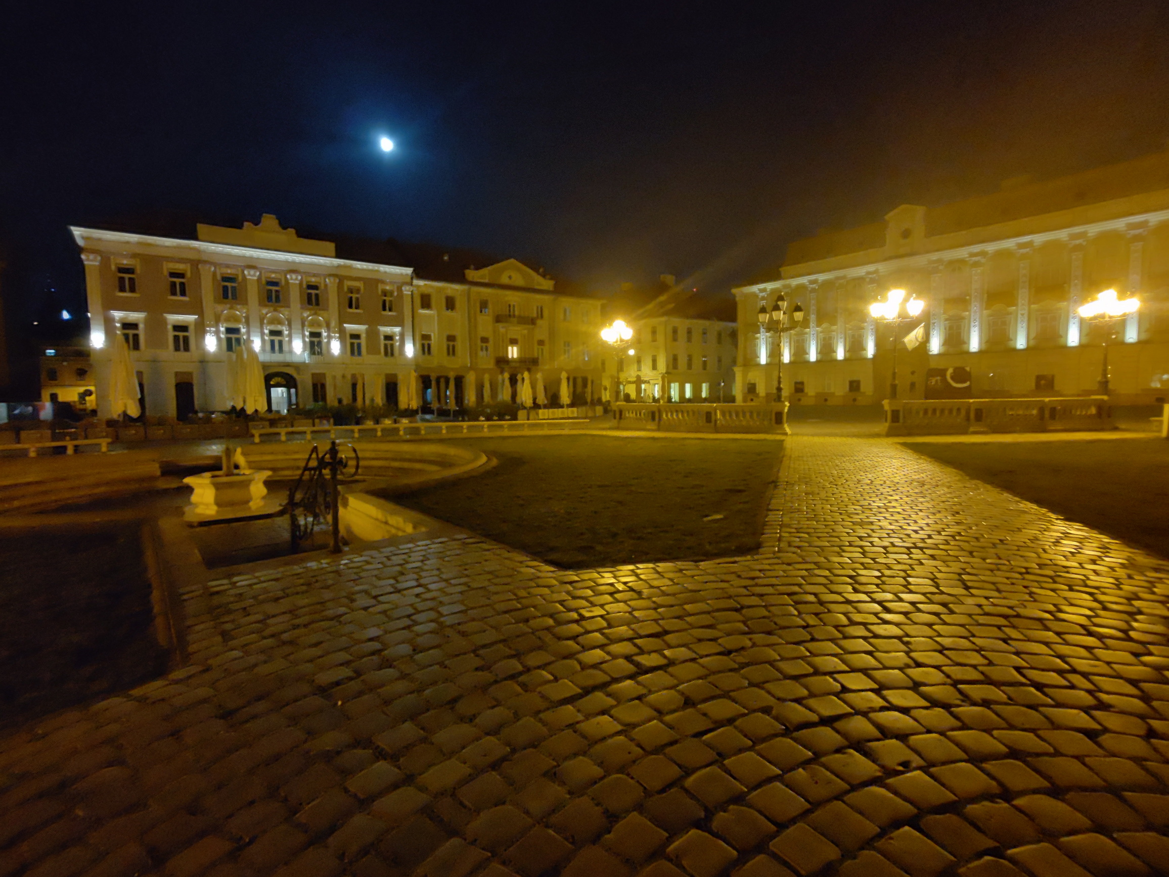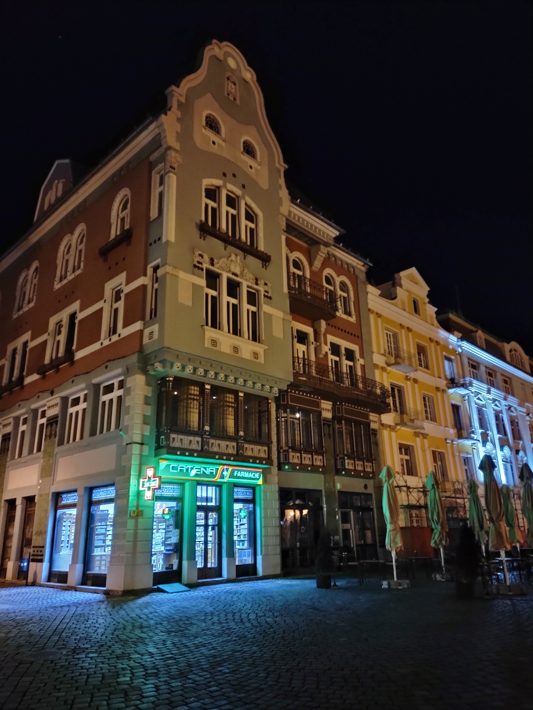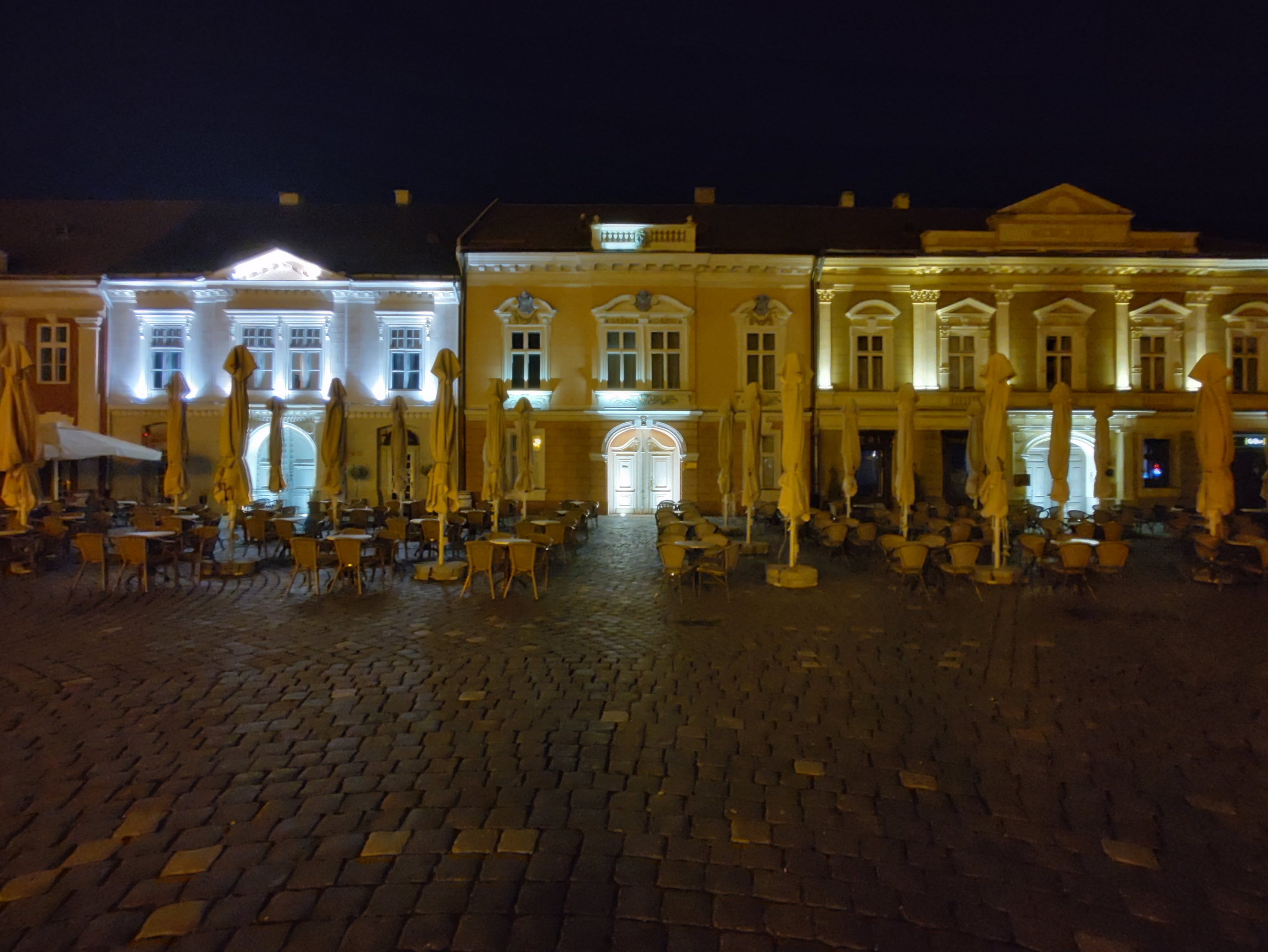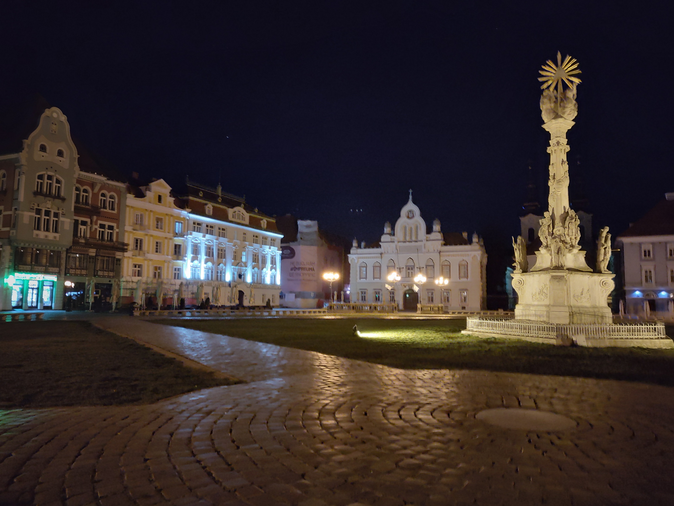 În condiţii low light trecem la Timişoara, pentru o galerie nocturnă în centrul oraşului. Capturile au fost cam întunecate şi gri, uneori roşiatice, portocalii, calde. Felinarele stradale creează dungi de lumină prea mari în jurul lor, mai mari decât ce vedem de obicei. E şi multă neclaritate la captura ultrawide, un soi de blur chiar. Captură cu Night Mode e ceva mai clară, puţin mai bine focalizată, mai clară şi se descurcă mai bine cu sursele de lumină. Totuşi susţin că avem culori mai calde decât de obicei.