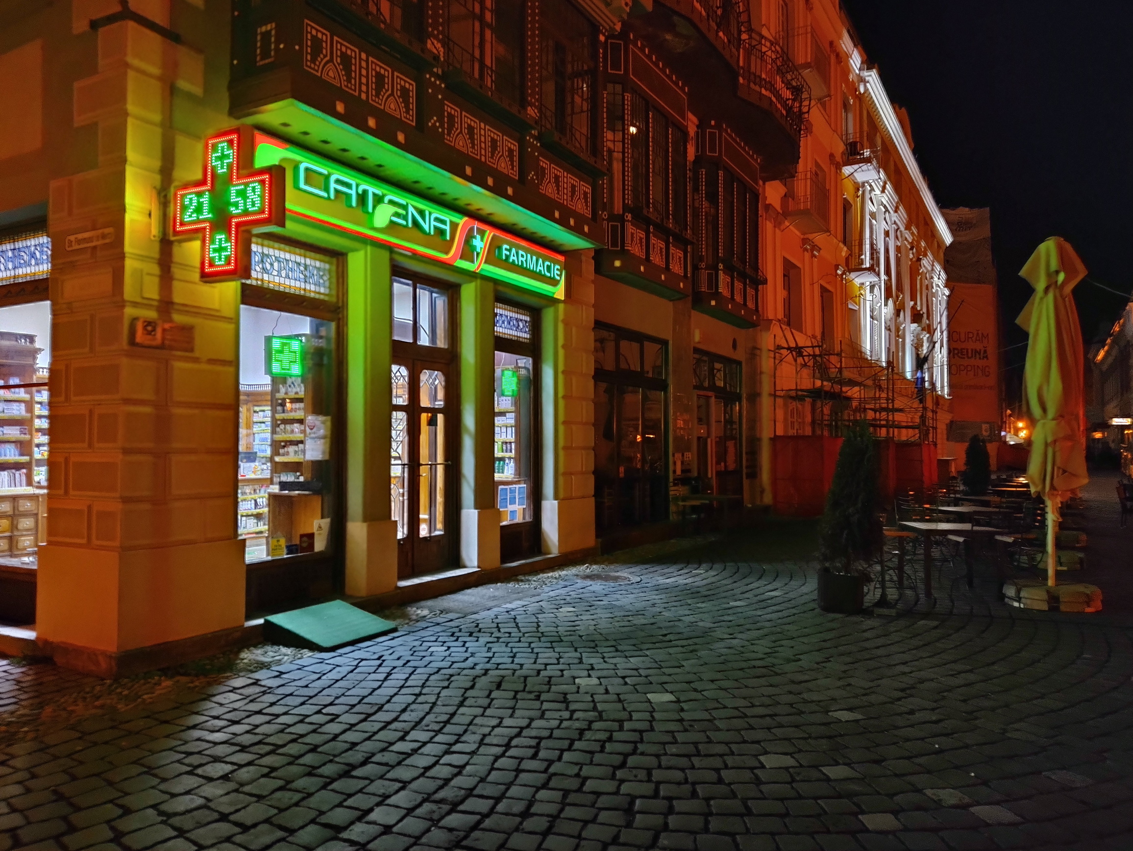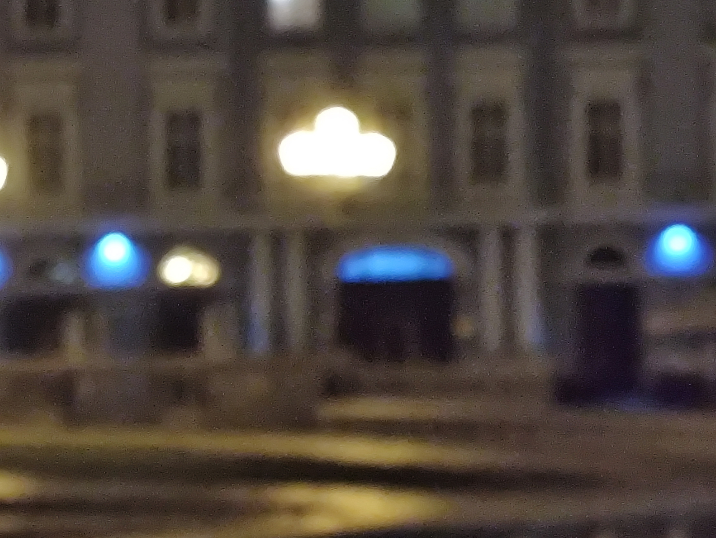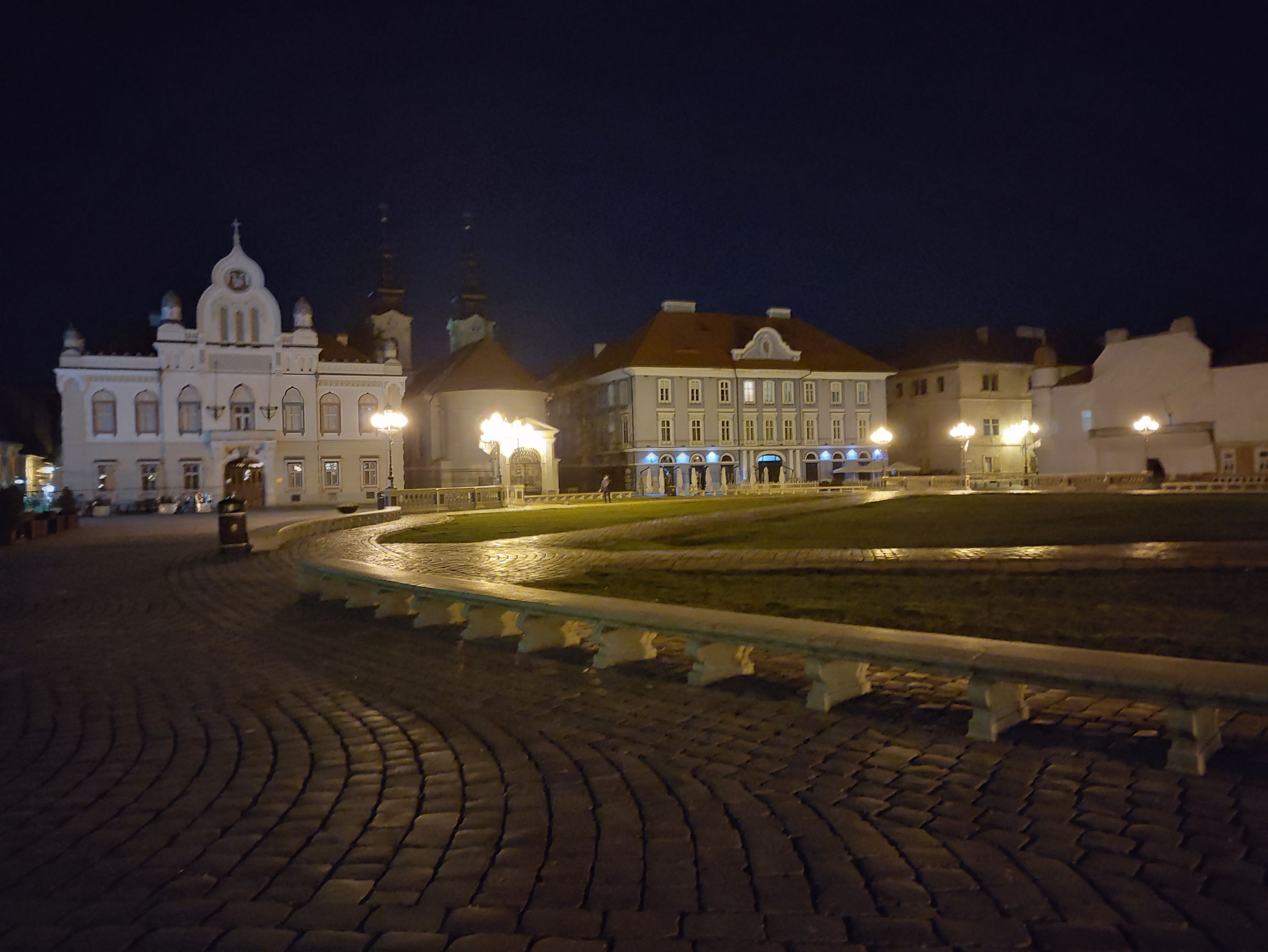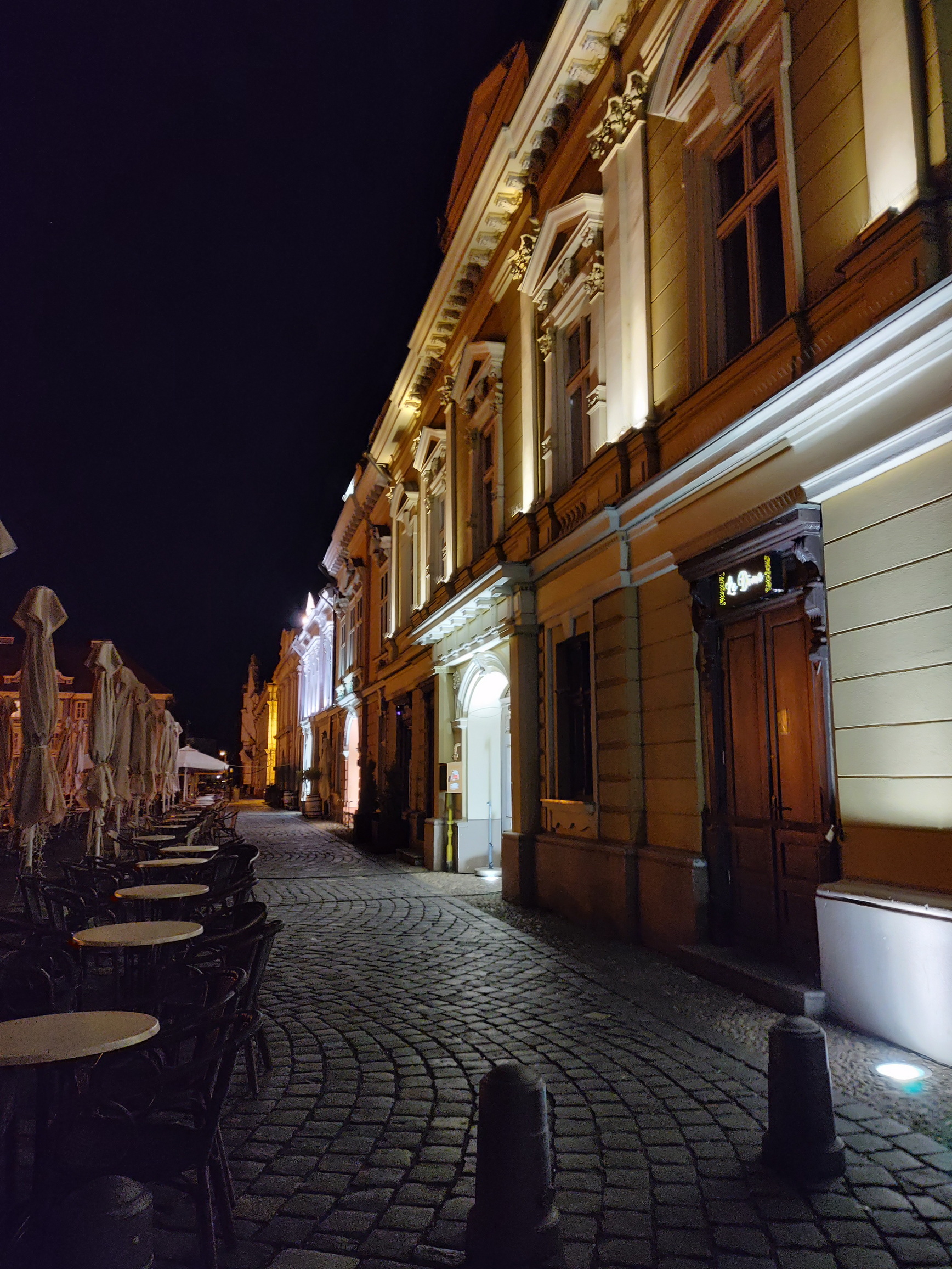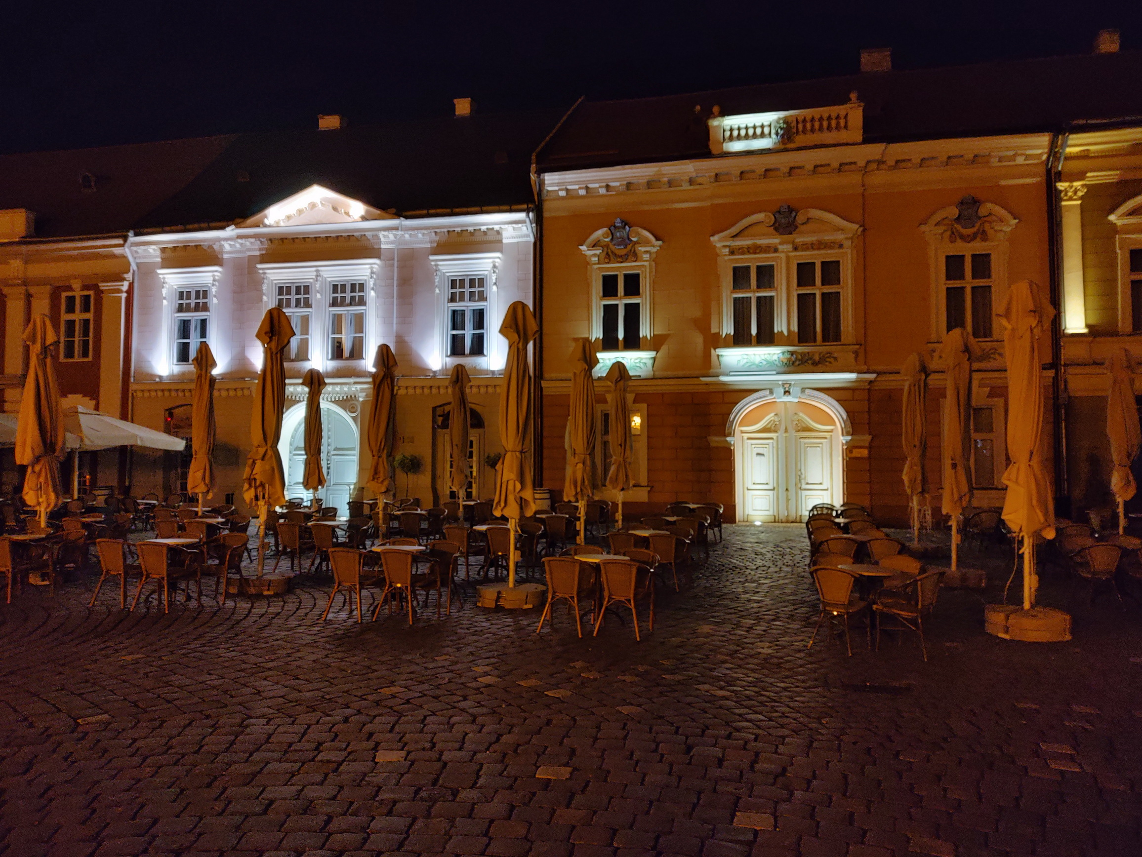 În condiţii low light trecem la Timişoara, pentru o galerie nocturnă în centrul oraşului. Capturile au fost cam întunecate şi gri, uneori roşiatice, portocalii, calde. Felinarele stradale creează dungi de lumină prea mari în jurul lor, mai mari decât ce vedem de obicei. E şi multă neclaritate la captura ultrawide, un soi de blur chiar. Captură cu Night Mode e ceva mai clară, puţin mai bine focalizată, mai clară şi se descurcă mai bine cu sursele de lumină. Totuşi susţin că avem culori mai calde decât de obicei.