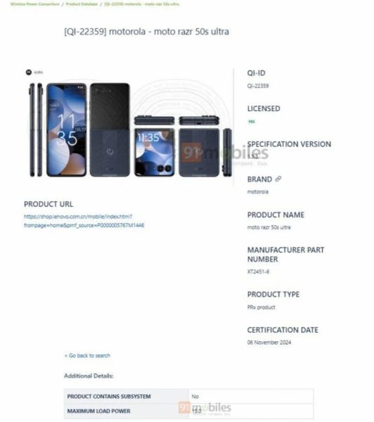 Motorola lansa telefoanele RAZR 50 şi RAZR 50 Ultra în iunie 2024, iar acum ne pregăteşte un Motorola RAZR 50s şi RAZR 50s Ultra. Recent RAZR 50s Ultra a apărut pe platforme de certificare, două mai precis: Wireless Power Consortium şi SGS Fimko Testing & Certification Services. RAZR 50s Ultra are numele de cod XT2451-6 şi vine cu un design similar cu RAZR 50 Ultra.
