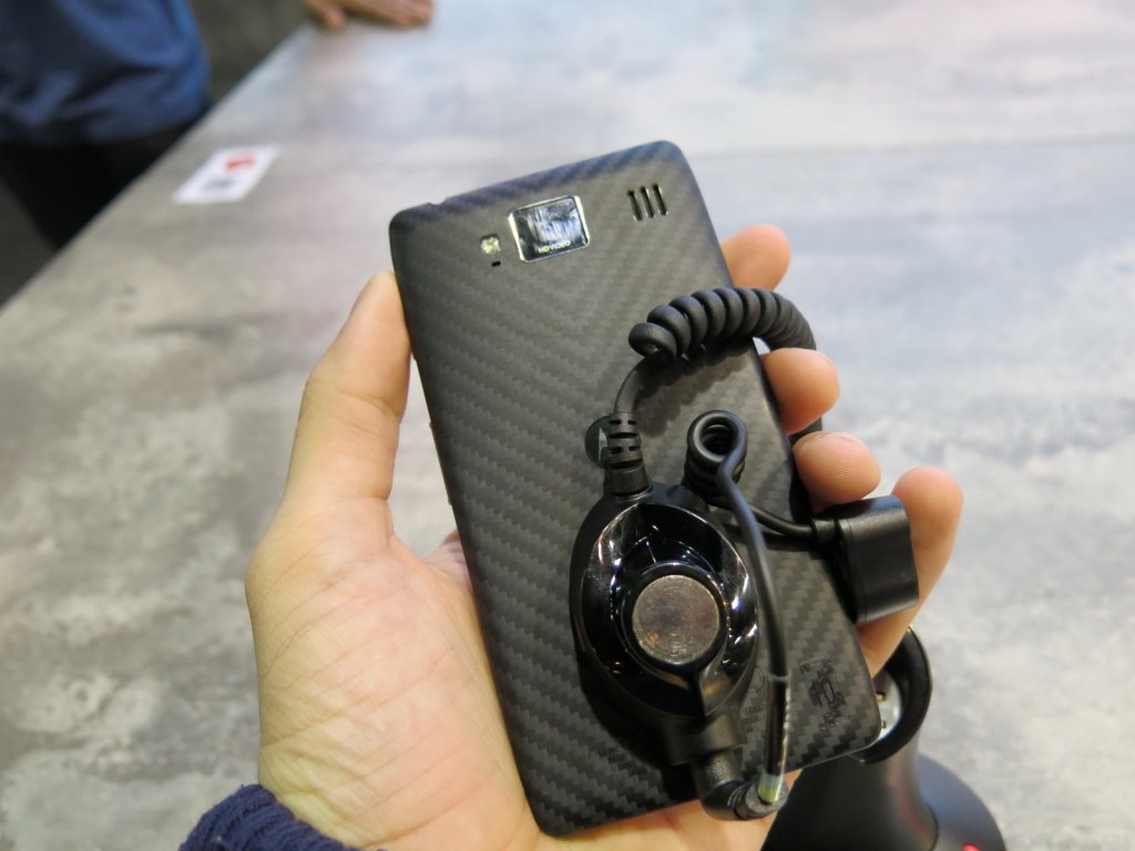 Observați culorile vii ale ecranului și faptul că handsetul stă bine în mână, iar în spate se află o cameră de 8 megapixeli, din câte știm. Camera e capabilă de capatură video 1080p la 30 fps și e însoțită de o cameră frontală de 1.3 MP. Telefonul rulează Android 4.1 Jelly Bean, iar carcasa sa combină kevlarul cu metalul.