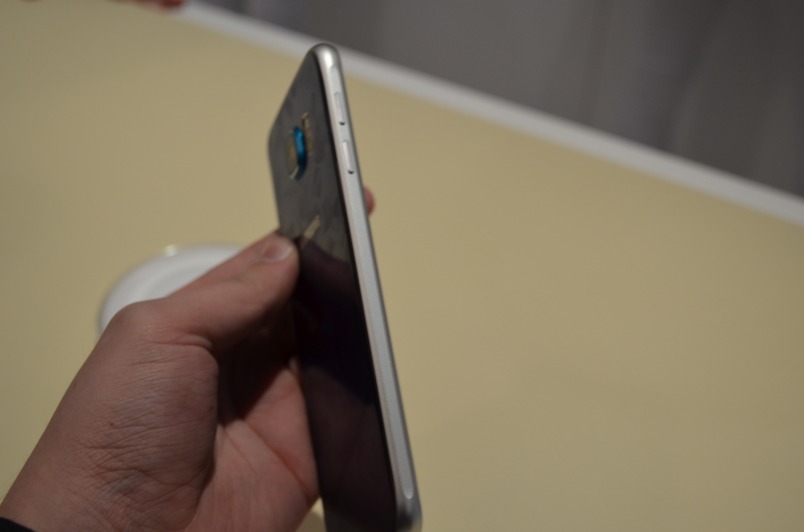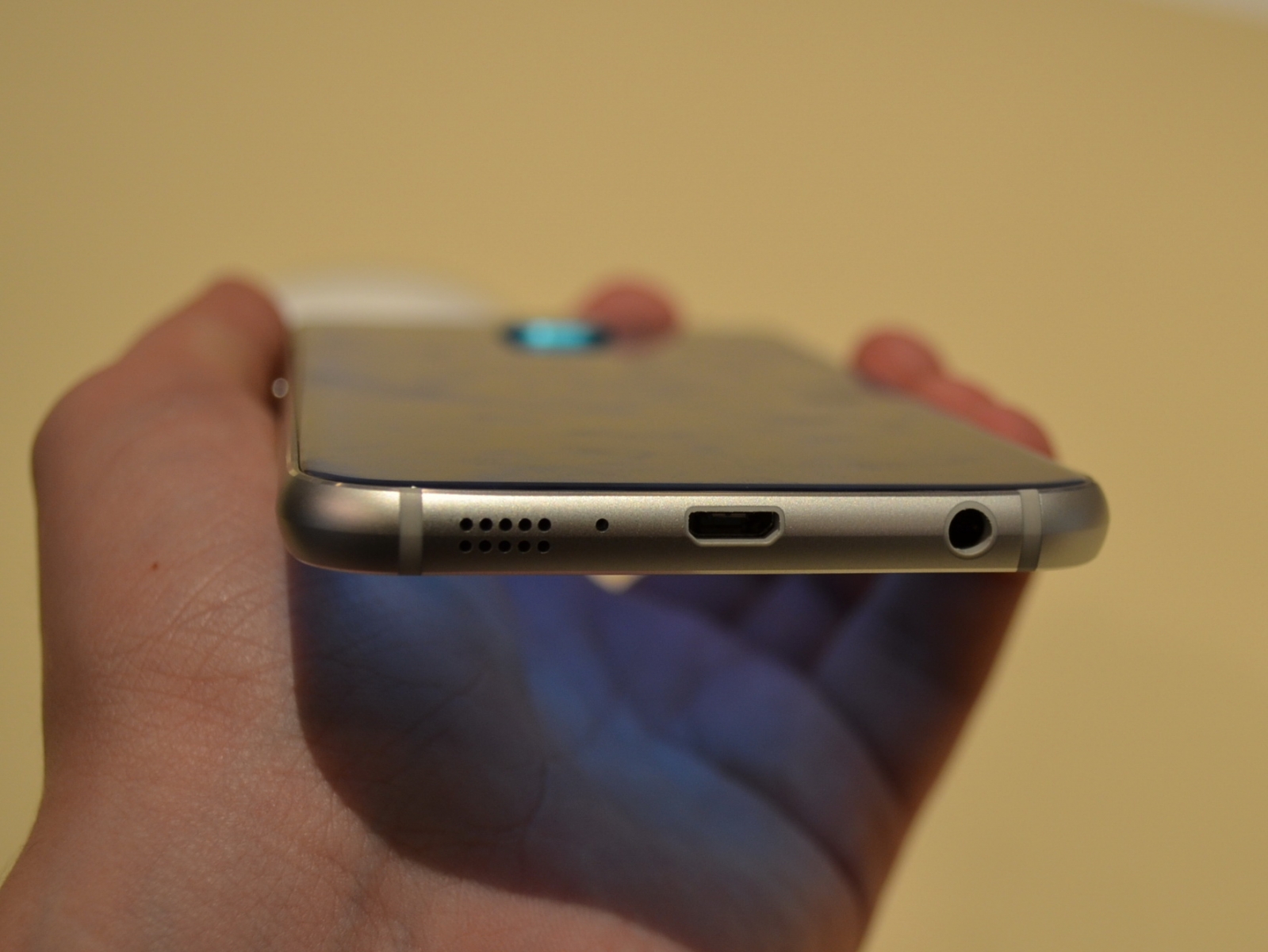 Muchia lui S6 şi zona inferioară duc clar cu gândul la iPhone 6, prin acel metal rotunjit si difuzorul cu orificii discrete. Telefonul e destul de glossy din cauza sticlei utilizate, iar ecranul Quad HD se vede excelent. Handsetul vine cu o cameră frontală de 5 megapixeli cu deschidere F/1.9, iar acest flagship are un look mai premium decât predecesorul său, asta e sigur. Produsul debutează pe 10 aprilie în magazinele din 20 de ţări, în 4 culori diferite.