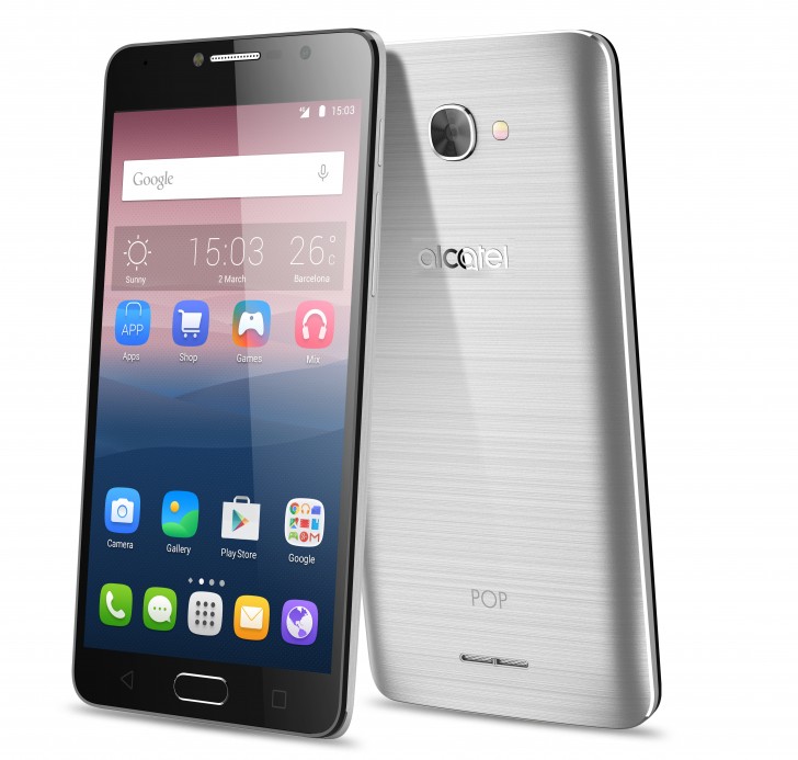 Următorul e Alcatel Pop 4+, cu ecran HD de 5.5 inch, 1.5 GB RAM şi 16 GB stocare. Sunt păstrate intacte de la modelul anterior procesorul, camera şi bateria. Alcatel Pop 4S încheie plutonul, cu un ecran de 5.5 inch Full HD, 2 GB RAM, 16 GB stocare şi procesor MediaTek MT6755M. În spate avem o cameră de 13 MP, iar în faţă una de 5 MP, în vreme ce bateria face un salt la 2960 mAh.
