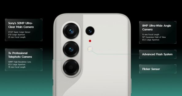 Pe partea foto, Tecno aduce un setup triplu în spate, ce ar trebui să se descurce decent în multe scenarii. Apare o cameră wide de 50 MP, una telephoto cu zoom optic 3X și OIS, tot de 50 MP, dar și o cameră ultrawide de 8 MP. Pentru selfie-uri primim un alt senzor de 50 MP, cu autofocus.