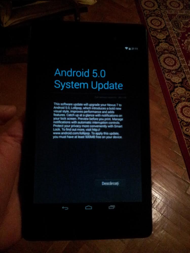 După ce în cursul săptămânii trecute, o serie de terminale au început să primească update-ul la Android 5.0 Lollipop, iată că începând de astăzi și tableta Nexus 7 din 2013 beneficiază de această actualizare, informație despre care aflăm prin intermediul cititorului nostru Toni Vasile, căruia îi mulțumim pe această cale.
