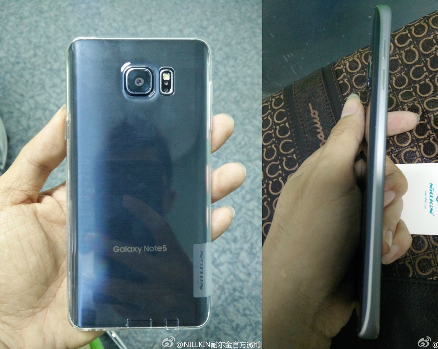 La fel ca și în cazul fotografiilor cu modelul prototip, se observă o linie de design foarte apropiată de Samsung Galaxy S6/S6 Edge, cu ramă metalică ce înconjoară device-ul, dar și cu spate din sticlă. Dacă în cazul lui S6 Edge, avem parte de sticlă curbată în partea frontală, acest detaliu este regăsit acum pe spatele lui Note 5.