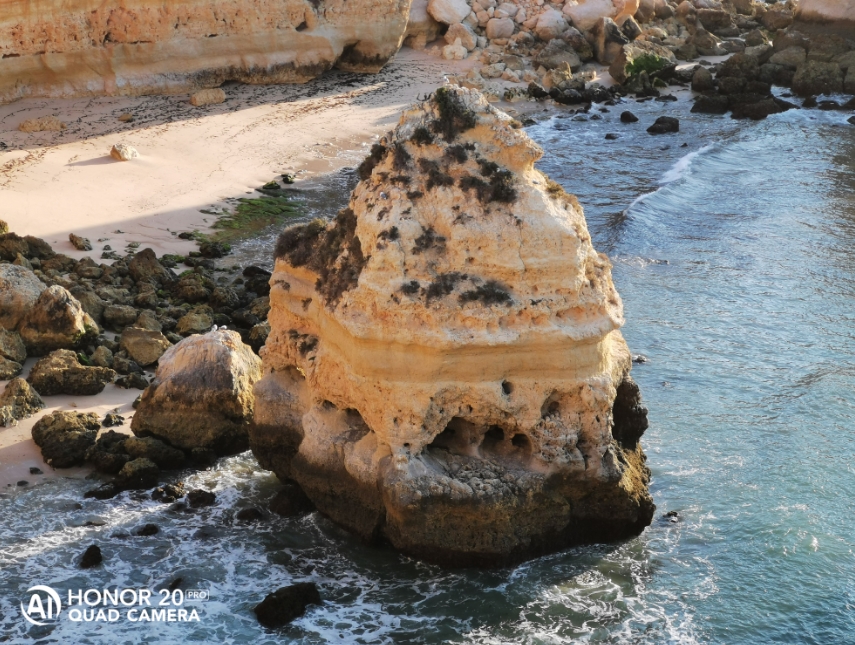 În continuare avem fotografia standard 1x cu soarele în față care la rândul său păstrează culorile bine și o iluminare bună, după care se trece la fotografierea cu zoom. Subiectul asupra căruia se face zoom este una dintre stâncile aflate lângă apă și vedeți mai jos rezultatul obținut la captura cu zoom optic 3x unde iarăși remarcă un nivel mare de detalii, o iluminare bună, dar și culori păstrate foarte bine în condițiile date.