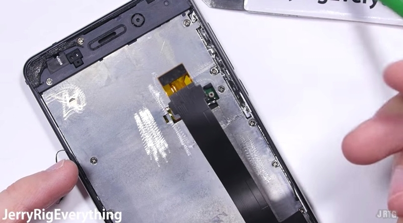 Înlocuirea ecranului, unul dintre cele mai dificile procese la repararea unui telefon e foarte uşor de făcut aici, durând doar câteva minute. Şi nu apar nici riscuri de crăpare a panoului. Ecranul rămâne funcţional chiar şi când e detaşat de acele margini. Placa mediană e fixată cu 19 şuruburi, care cresc soliditatea acestui smartphone. Şi bateria e uşor de accesat, atât de uşor încât Jerry numeşte amplasarea sa "visul unui reparator".