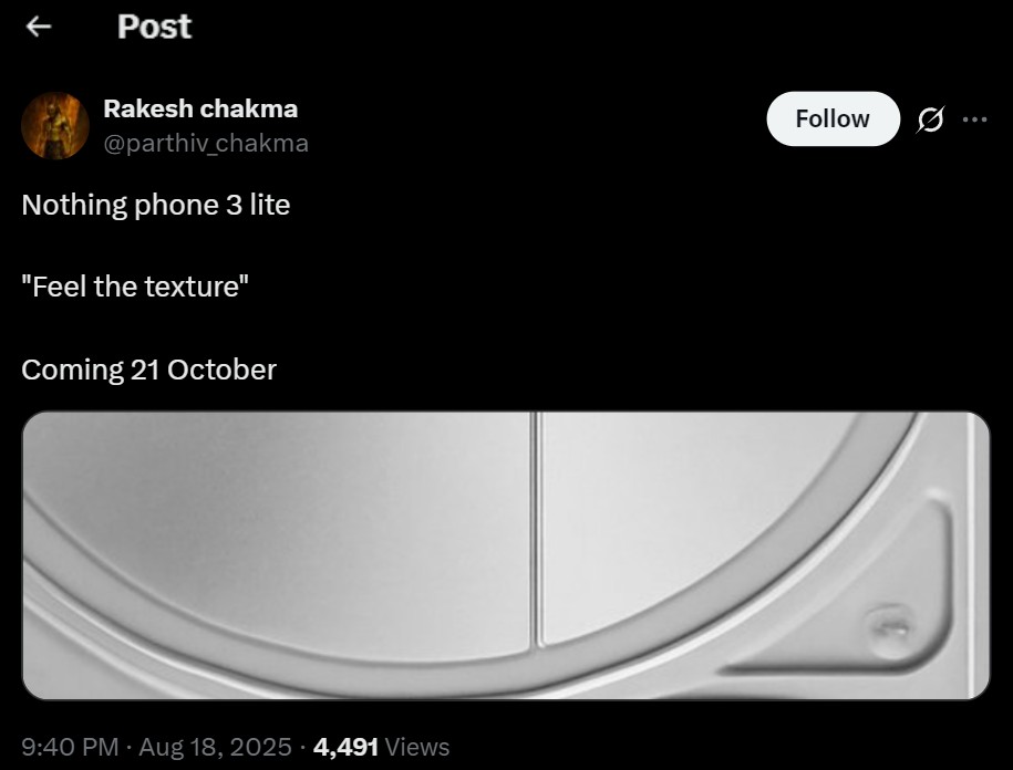Nothing se pregătește să extindă gama sa cu un model mai accesibil. Despre acest terminal am aflat câteva detalii încă de acum câteva luni, dar pare că acum a primit chiar o dată de lansare, deși momentan neconfirmată. Tipster-ul Rakesh Chakma susține ca telefonul se va numi Nothing Phone 3 Lite și va fi prezentat pe 21 octombrie. Apare chiar și o fotografie sub formă de teaser în postarea de pe X.com (fostul Twitter). Mai jos avem detalii.