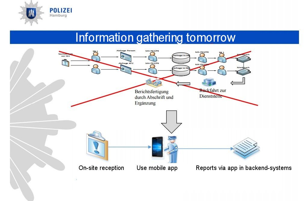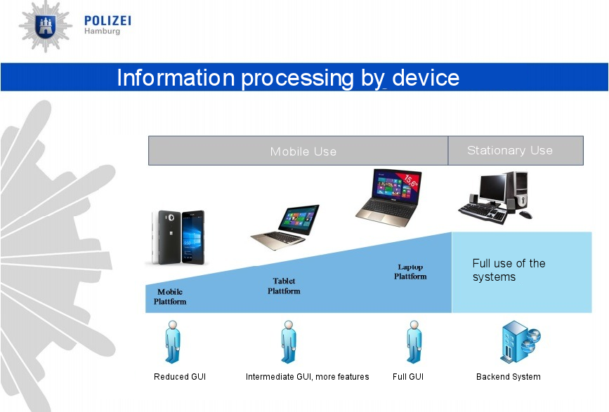 Aplicaţiile UWP interconectează telefoane, tablete, laptopuri, desktopuri şi chiar sistemul backend. Ofiţerii vor avea acces la un serviciu intern de mesagerie, la informaţii, aplicaţii şi notificări legate de incidente. Windows 10 Mobile ca platformă enterprise e o idee bună în acest caz, sau cel puţin aşa cred autorităţile din Germania.
