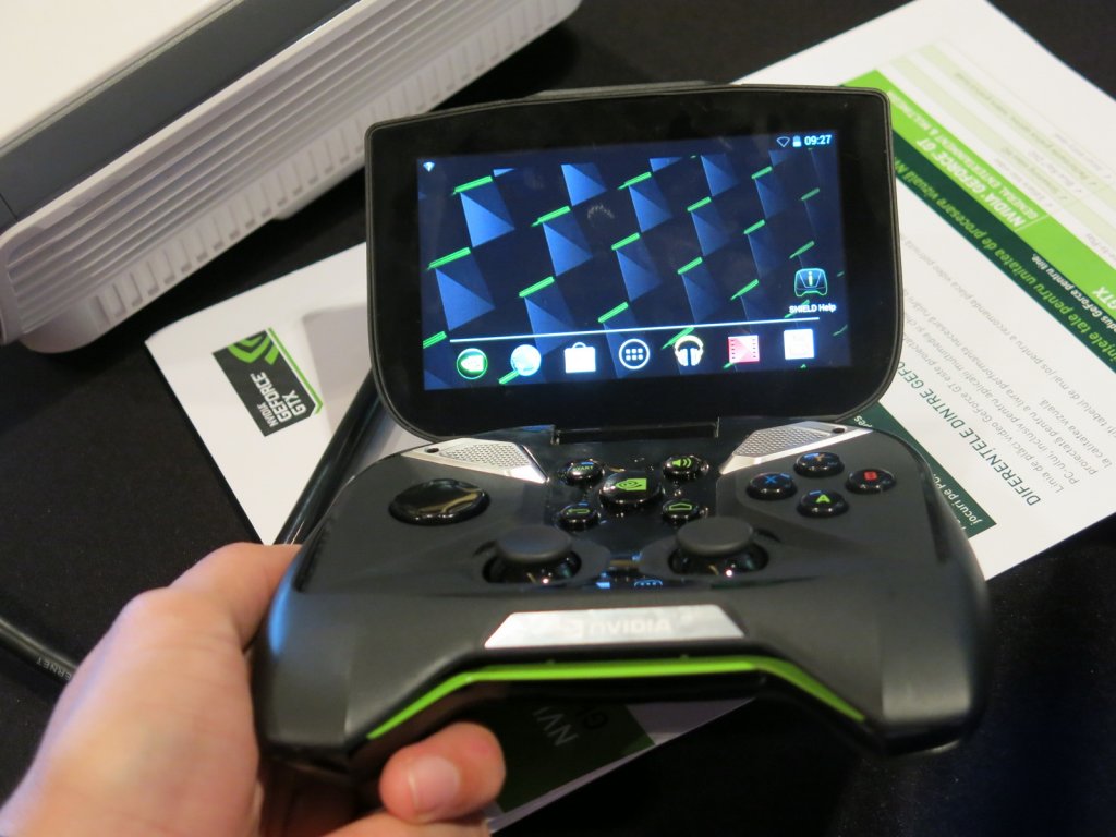 Atmosfera era ușor plicticoasă. Asta și pentru că GTX 780 și 770 sunt cunoscute de ceva timp la nivel de specificații, au apărut și review-uri etc. La un moment dat apare un slide cu NVIDIA Project Shield. Nicio reacție în sală. Eram câțiva care am văzut device-ul în sticla de la MWC, dar niciunul nu a avut acces să se joace cu consola Android, să o întoarcă pe toate părțile, să vadă ce știe să facă. La un moment dat suntem întrebați dacă ne-ar plăcea să ne jucăm cu ea și ni se spune că singura unitate demo din Uniunea Europeană este la București, în fața noastră.