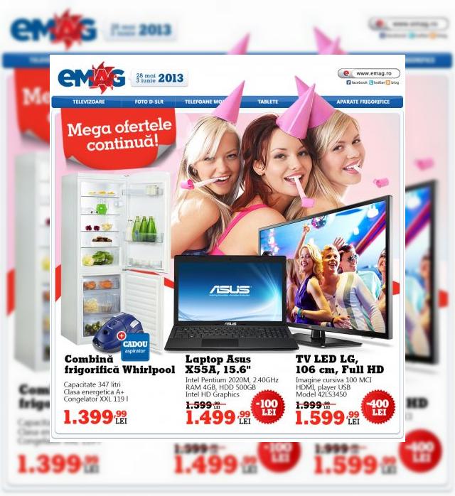 După un weekend prelungit de oferte, eMAG.ro ne propune încă o săptămână de promoții și reduceri, pe care le aflați mai jos. Ziua de ieri a fost marcată de sosirea lui HTC One pe negru la acest retailer, iar telefonul quad core Snapdragon 600 costă 2.599 lei.