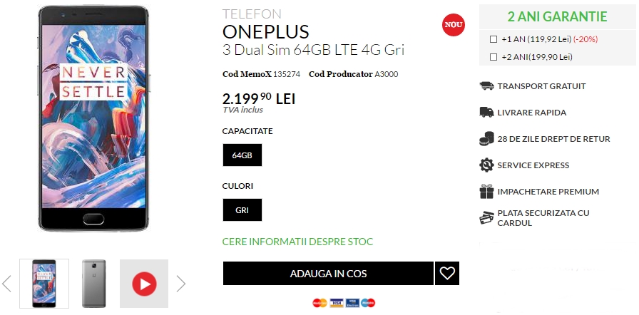 Odată cu achiziția telefonului veți beneficia și de un certificat de garanție pe 2 ani, iar dacă optați pentru pachetul garanție extra se promite reparația produsului în doar 5 zile, sau în caz contract înlocuirea sa cu unul complet nou. Puteți comanda noul flagship OnePlus de aici!