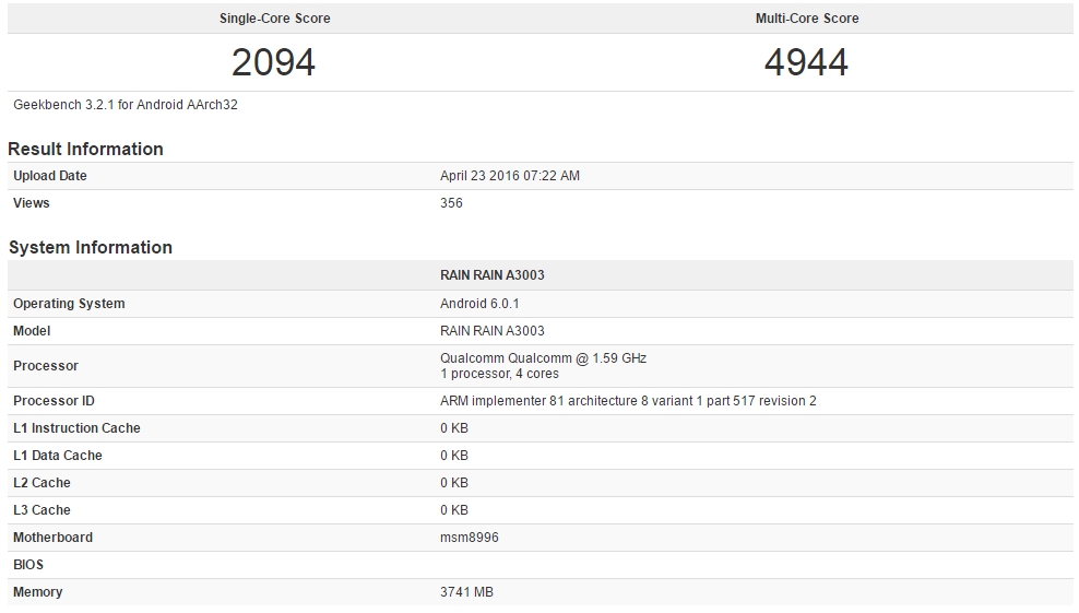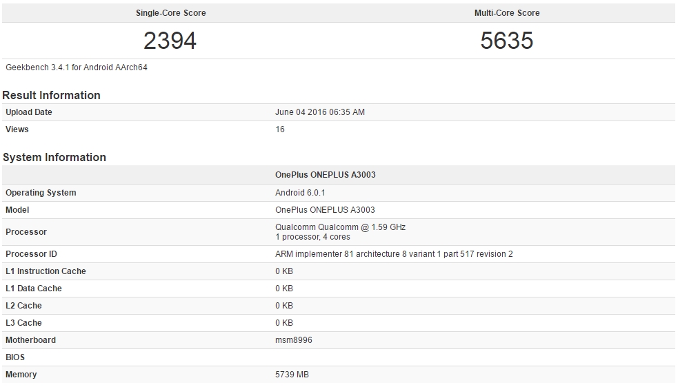 După cum aflam anterior, acest produs urmează a sosi în 2 sau 3 variante diferite pe piață, lucru pe care și testul benchmark GeekBench ni-l confirmă astăzi. În baza de date GeekBench își fac apariția două modele diferite de OnePlus 3, prima dintre acestea sosind la pachet cu un procesor quad-core Qualcomm Snapdragon 820 tactat la 1.59 GHz și cu 4 GB memorie RAM.