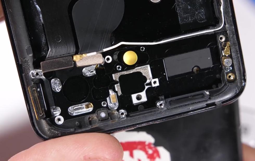 A fost nevoie de multe "săpături" pentru ca YouTuberul să ajungă la mecanismul cititorului de amprente. Este acoperit cu o bandă care îl camuflează şi vine cu un senzor similar cu cel foto şi un mecanism care foloseşte lumină verde proiectată de display pentru a ilumina amprenta. Se vede şi o mică gaură în spatele panoului de ecran, ceea ce duce cu gândul la un viitor în care vom putea avea camera selfie integrată într-un mod similar.
