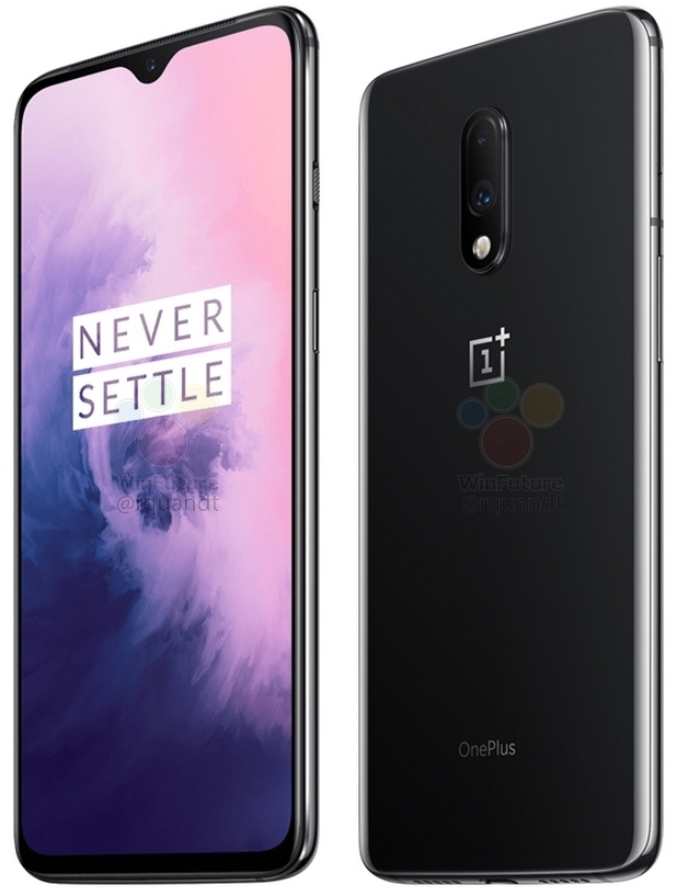 Așa cum se poate remarca prin intermediul randărilor de față, OnePlus 7 este aproape identic lui OnePlus 6T la capitolul design, singura schimbare observată cu ochiul liber fiind modulul camerei foto duale din spate care acum găzduiește și bliț-ul LED. Ecranul este o unitate de 6.41 inch cu rezoluție FHD+ de 2340 x 1080 pixeli și cu tehnologie AMOLED.