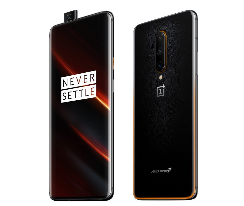 Practic telefonul are tot ce are şi OnePlus 7T Pro, de la procesorul Snapdragon 855+, la bateria de 4.085 mAh şi ecranul de 6.7 inch Fluid AMOLED de 90 Hz plus camerele. Totuşi, aici avem 12 GB RAM şi nu 8 GB ca modelul 7T Pro. Avem şi 256 GB stocare. Designul este inspirat de către scuderia McLaren şi istoria sa in lumea curselor. Spatele are o textură de lemn negru “miezos” cu o serie de "valuri" în jurul camerei, precum cele făcute de o piatră aruncată în apă.