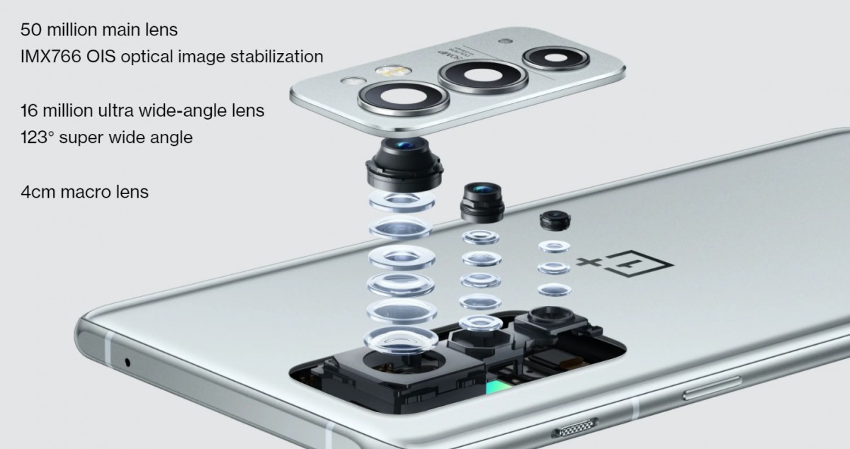 Senzorul principal al camerei de aici e acelaşi Sony IMX766 de la camera ultrawide de pe OnePlus 9 şi 9 Pro. Are mărime de 1/1.56 inch, vine cu suport DOL-HDR, pixeli de 1 micron, pixel binning, OIS şi filmare 4K la 60 FPS. Camera ultrawide e luată de la OnePlus 9R, iar cea Macro de 2 MP e un downgrade de la cea de 5 MP, dar măcar nu e o cameră monocromă.