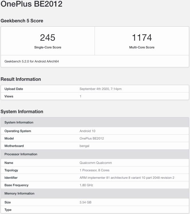 Am aflat de ceva vreme ca OnePlus Nord va avea o versiune Lite, un "frăţior", cunoscut sub numele de cod OnePlus Clover. Acum terminalul a înregistrat o scăpare proaspătă în GeekBench, deşi o privim cu precauţie, pentru că terminalul apare în benchmark cu numele de cod BE2012.