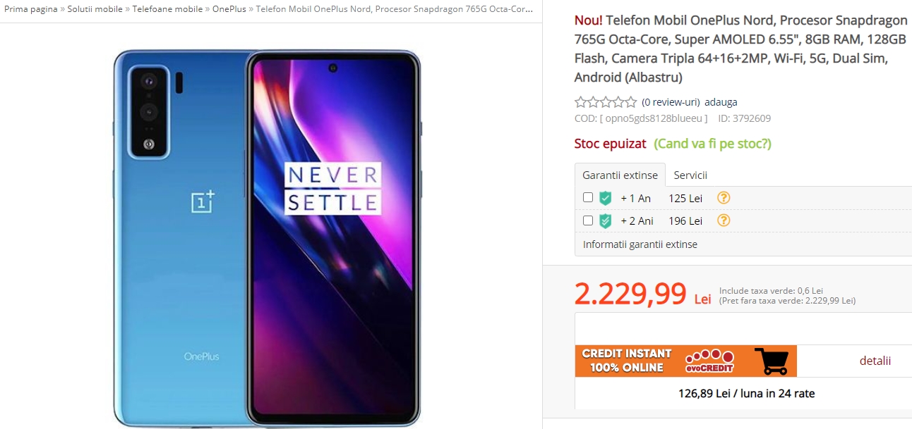 În așteptarea lansării lui OnePlus Nord de pe 21 iulie descoperim un leak exclusiv de pe plan local, retailerul evoMAG listând noul telefon la vânzare pe site. Ce remarcăm din start este faptul că imaginea folosită aici este doar un placeholder și este fix randarea asociată cu multe luni în urmă telefonului pe vremea când era cunoscut drept OnePlus 8 Lite. Avem totuși un preț și ceea ce pare a fi lista finală de dotări!