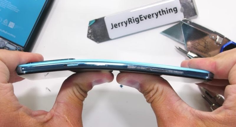 Mitul se spulberă spre final, atunci când YouTuberul aduce în discuţie probleme structurale. Telefonul poate fi îndoit şi vedem cum rama sa crapă în zona butonului Power, apoi ecranul se strică, afisand o eroare. Atenţie: nu se strică Gorilla Glass ci panoul interior al ecranului, deci telefonul devine nefuncţional.