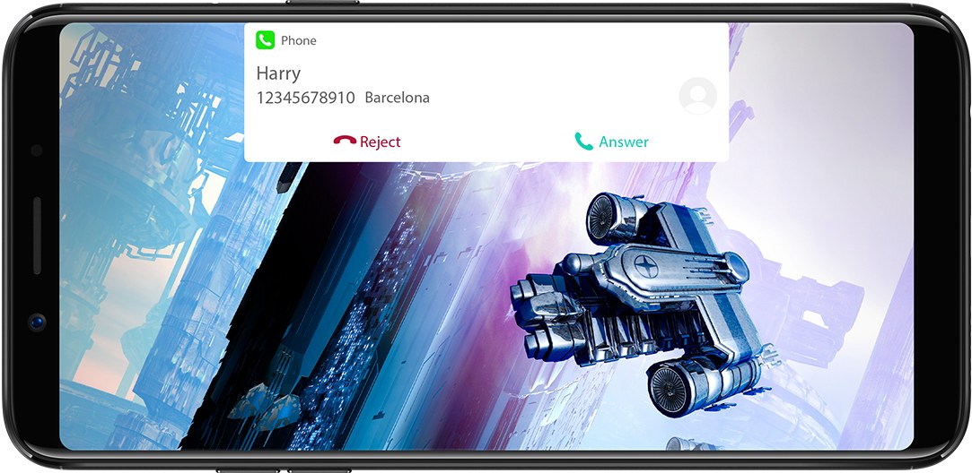 În plan central mai avem și display-ul LTPS TFT de 6 inch cu raport 18:9 și rezoluție Full HD+ (2160 x 1080 pixeli), camera foto principală de 16 megapixeli cu deschidere f/1.8 și bateria de 3200 mAh. Telefonul oferă și jack audio, iar procesorul este o unitate octa-core MediaTek Helio P23. Are scanner de amprente în spate, slot dual-SIM și slot pentru carduri microSD.