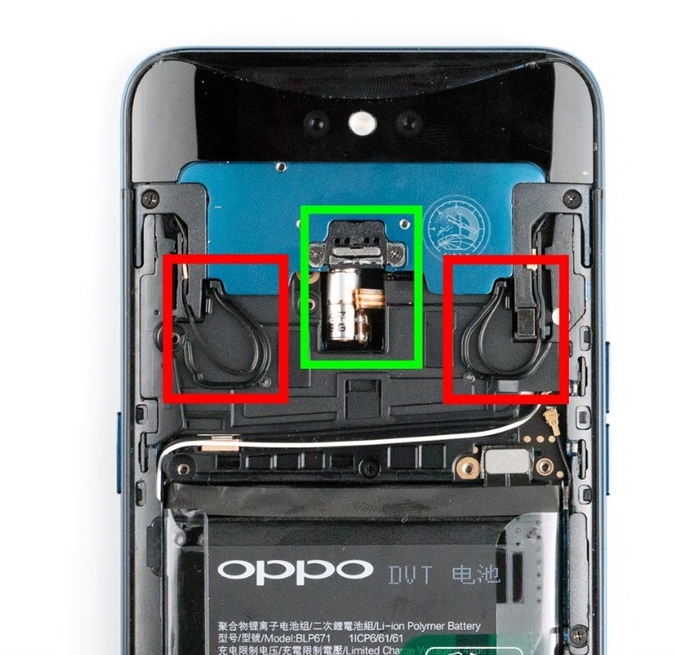 Același site îl desfăcuse și pe Vivo Nex S și aflase că periscopul său e pe bază de mecanism cu arc. În cazul lui Oppo Find X găsim un motoraș care pune în mișcare o structură de "periscop dual". Practic sunt două șine pe care alunecă mecanismul respectiv. Personal îmi amintește puțin de suspensia unei mașini, după cum se vede în acea animație, dar la un nivel mai simplist.