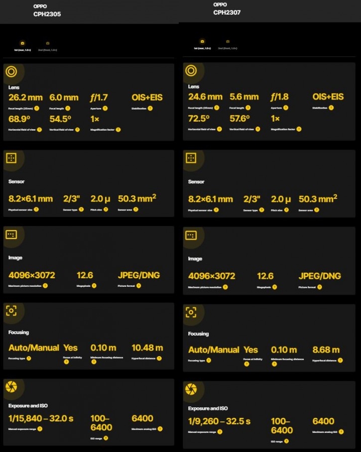 Aflăm şi că OPPO a apelat la doi senzori Sony IMX766 pentru camera principală şi cea ultrawide, aceiaşi senzori de pe Find X3 Pro, care a avut tot IMX766 pe ambele camere. Cipul MariSilicon va ajuta cu procesarea de imagini în spaţiu de culoare 10 bit şi va ajutat la o focalizare omnidirecţională cât mai rapidă. Camera frontală include noul senzor IMX709 de pe seria Reno7 apropo.