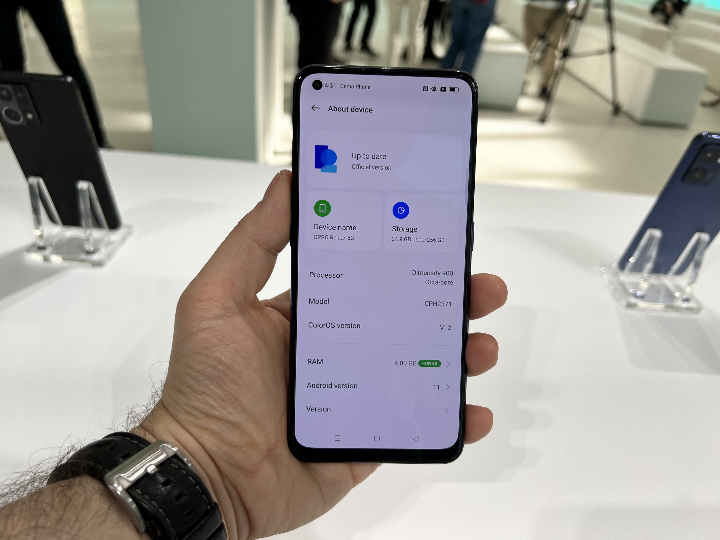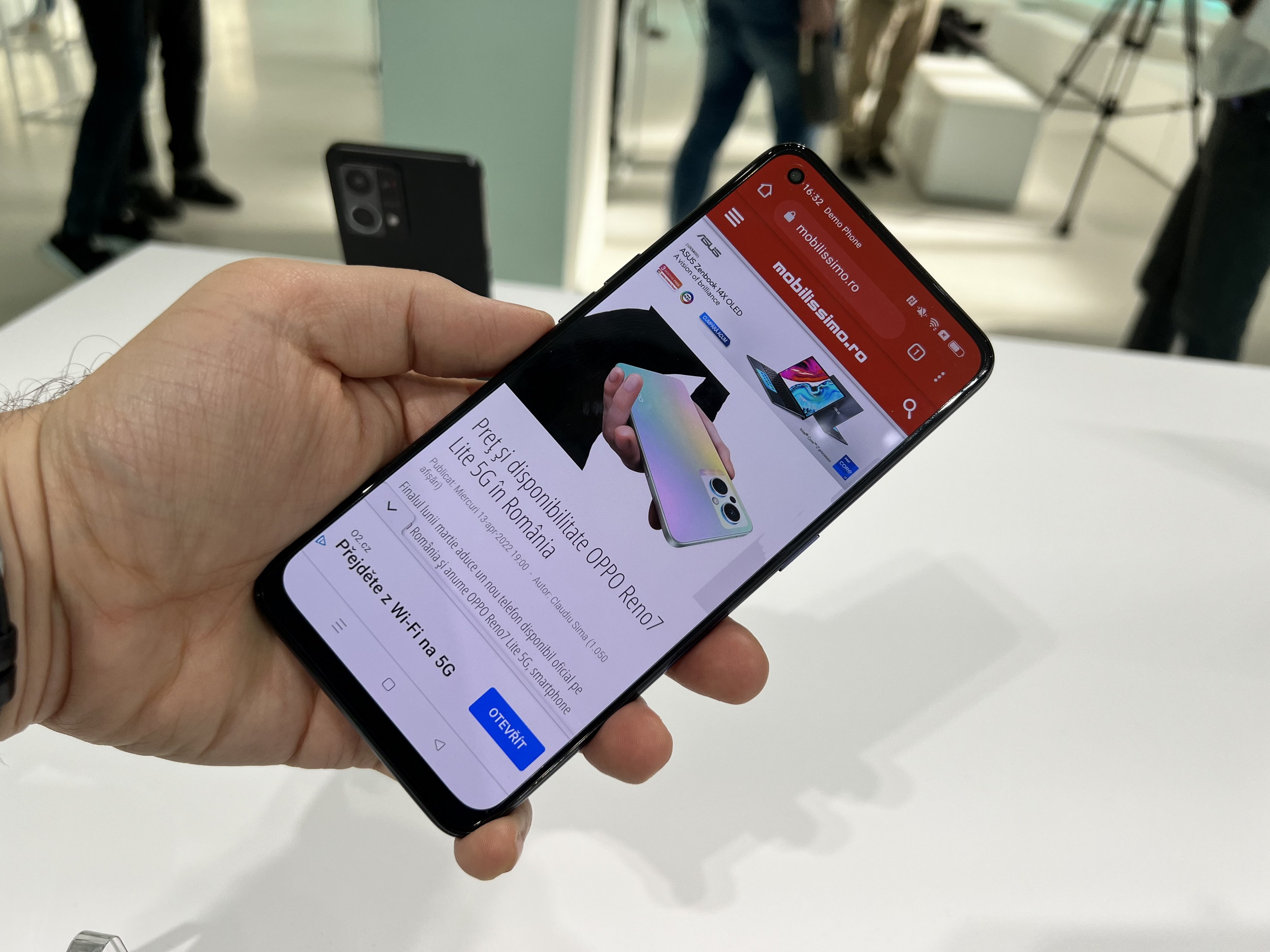 OPPO Reno7 5G este un telefon midrange cu ecran de 6.43 inch, un AMOLED de 90 Hz şi cu procesor MediaTek Dimensity 900 5G de 6 nm. Vine cu 8 GB RAM şi 256 GB stocare, dar şi baterie de 4500 mAh cu încărcare la 65W. Are spate de culoare neagră sau albastru în gradient, cu acel luciu tipic Reno Glow. Versiunea în gradient e inspirată de meteoriti pe cerul senin.