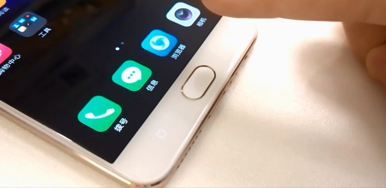 De aici aflăm să scanner-ul adus de Oppo este unul foarte rapid ce promite deblocarea device-ului în doar 0.2 secunde. Totodată, avem ocazia să aruncăm o privire și asupra unor fotografii reale cu partea frontală a telefonului în care se remarcă prezența butonului home fizic, dar și sticla 2.5D aplicată peste.