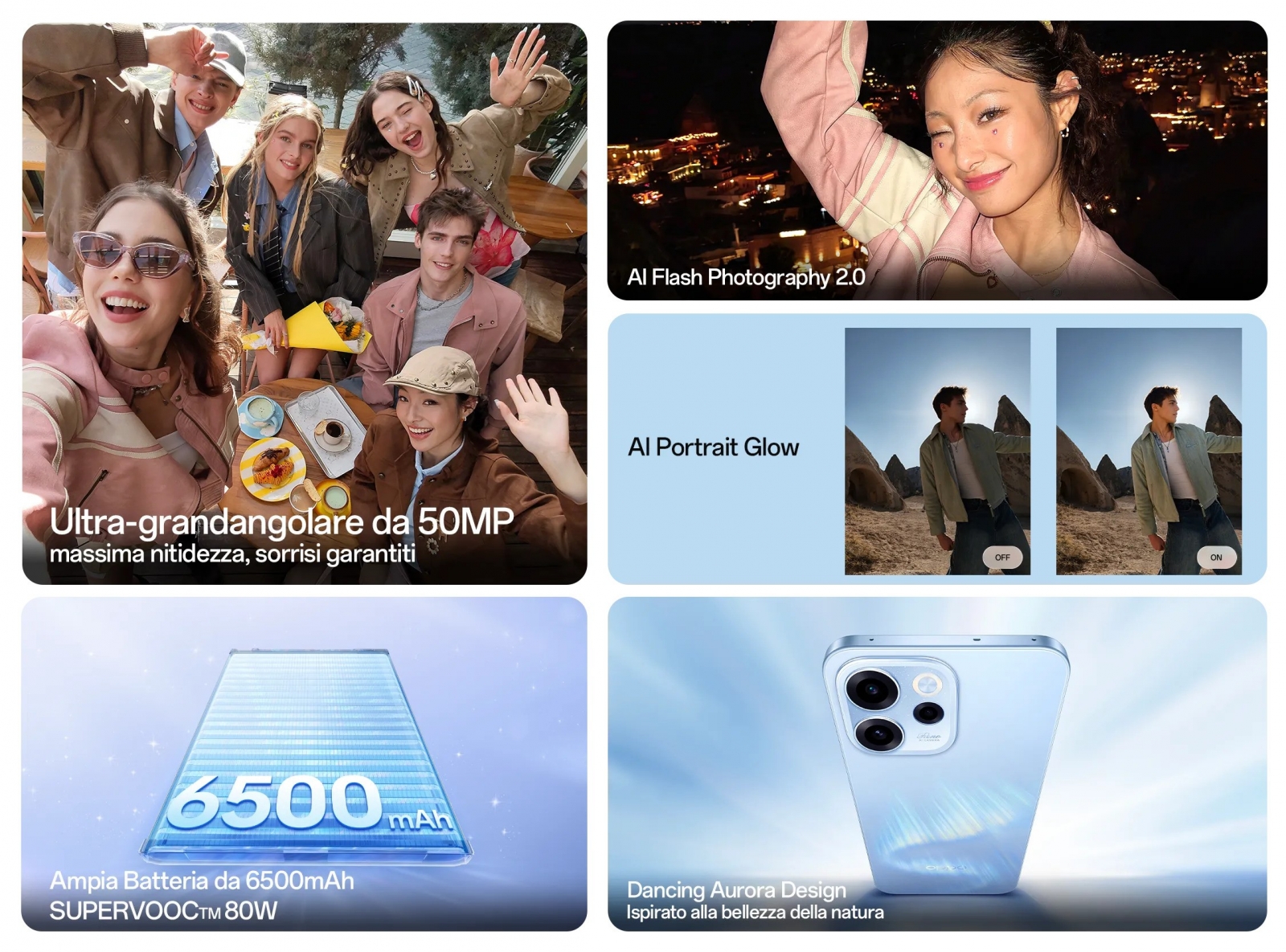 Reno15 FS 5G vine pe albastru auroră boreală și albastru închis, la 399 euro. Nu e tocmai accesibil, dar ca preț de lansare din care se va tăia pe viitor nu sună chiar rău.